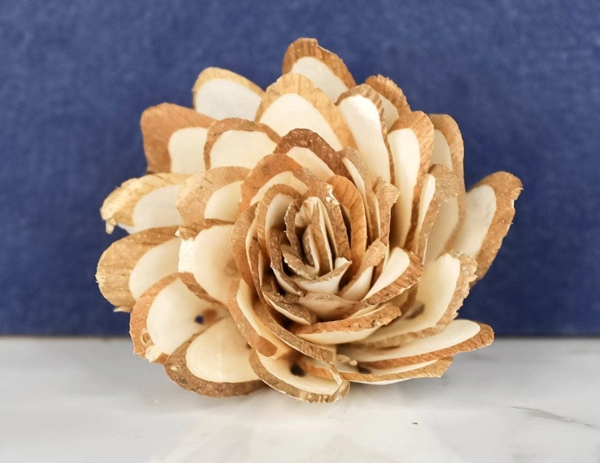 The Almond is a great way to add a rustic vibe to your sola flowers craft or wood bouquet. This flower features the sola wood bark on the edges, giving it a two-tone effect that looks gorgeous when used raw or when dyed.
