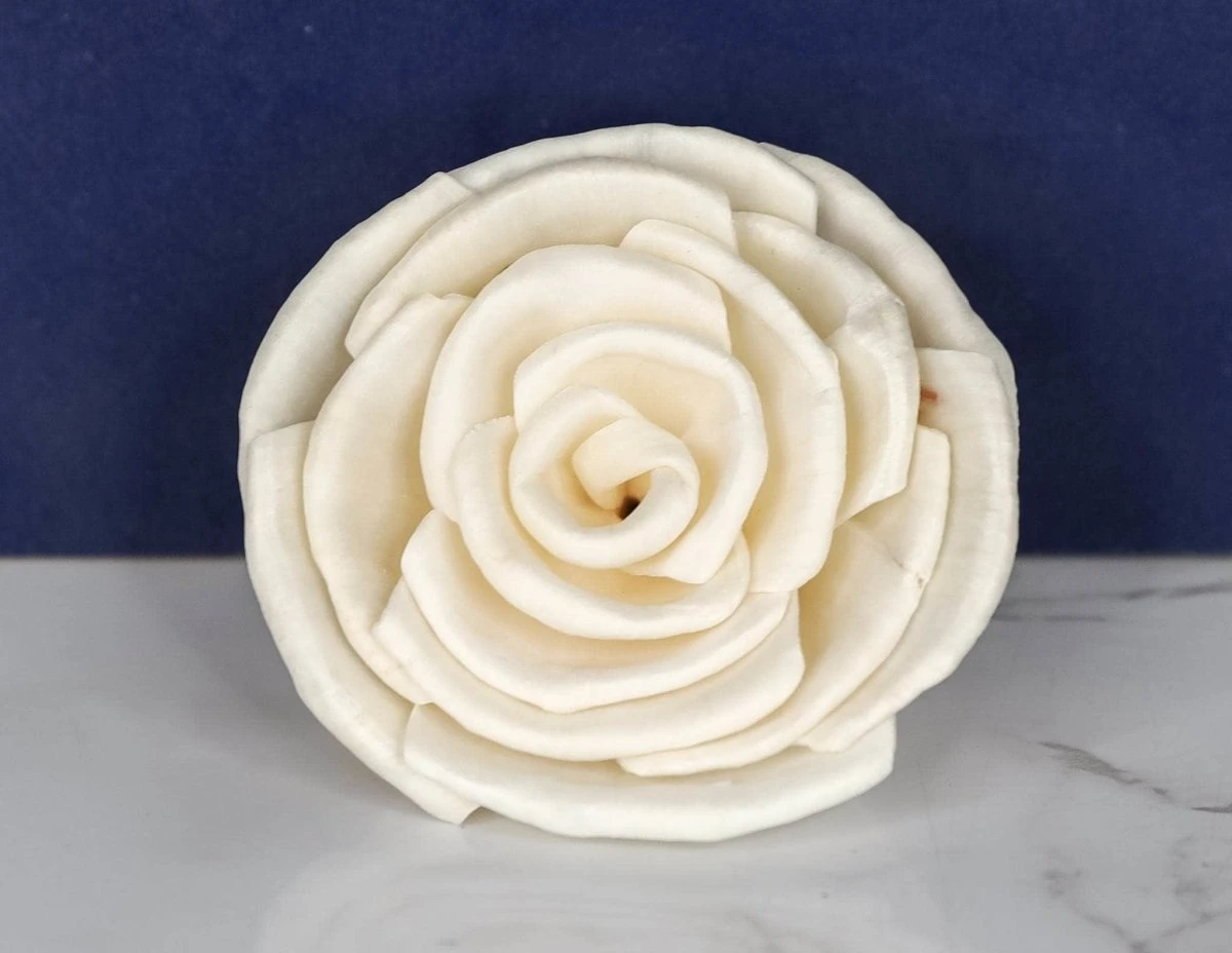 There is something so beautiful about a classic rose, and this wood flower definitely lives up to that. The hand crafted petals are perfectly layered, giving the flower a blooming appearance. This would be stunning in bridal bouquets, decor pieces, and more.