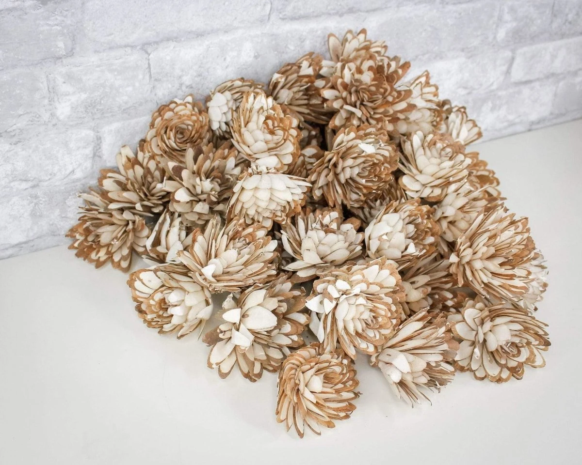 The Almond is a great way to add a rustic vibe to your sola flowers craft or wood bouquet. This flower features the sola wood bark on the edges, giving it a two-tone effect that looks gorgeous when used raw or when dyed.