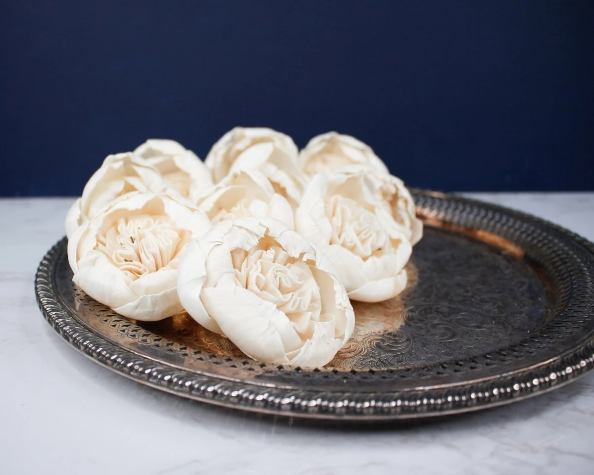 Stems can be attached to these flowers for easy arranging. Or, you could attach them directly to your decor piece.