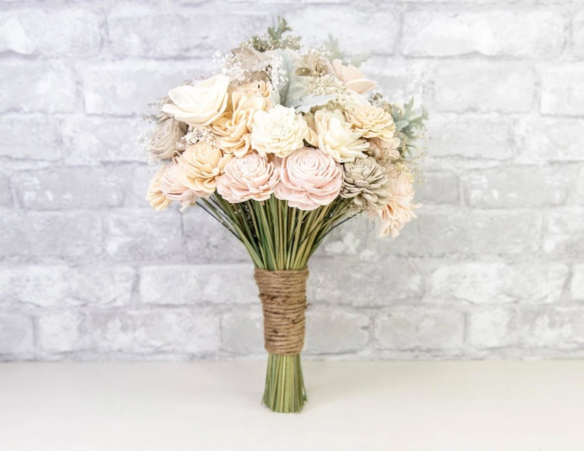 This gorgeous bouquet is giving us all the vintage vibes! The gorgeous fillers are simple, sparkly, and stunning! This bouquet kit includes everything you need to create a gorgeous bridal bouquet. In the example shown we used the colors Powder Pink, Ivory, Weathered Grey, and we left some flowers raw (undyed). You can choose from our 50+ color options and dye as many, or as few, flowers as you would like.