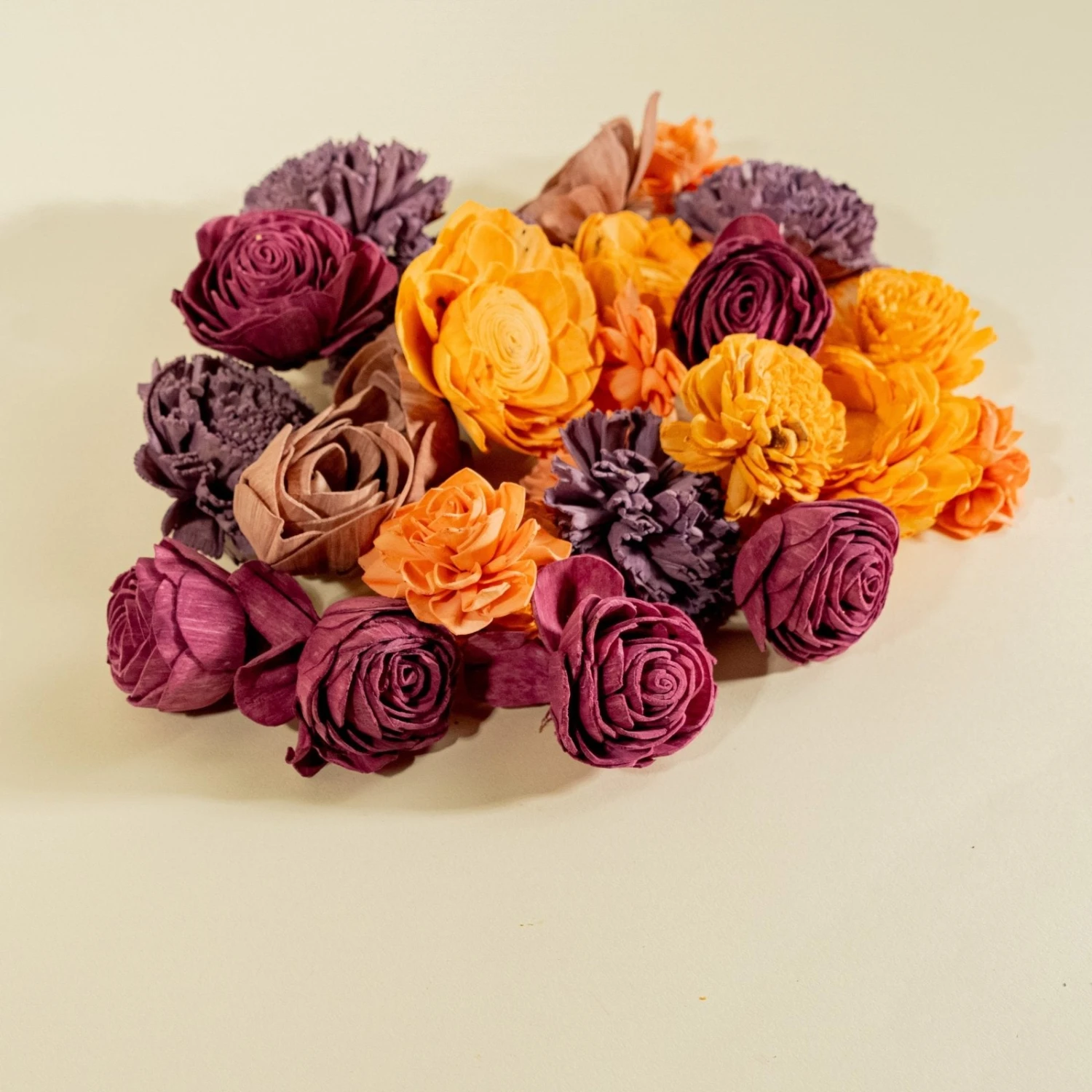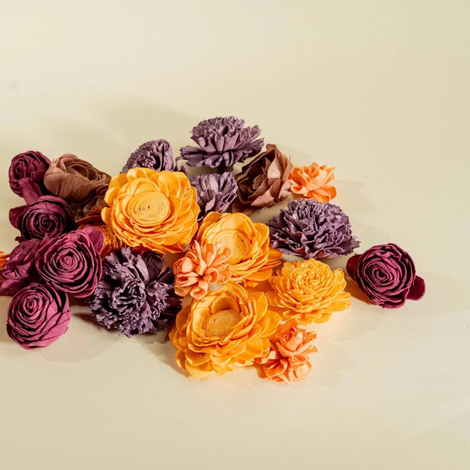 Inspired by the array of colors at sunset, the gentle harmony of these colors creates a stunning assortment of sola wood flowers.