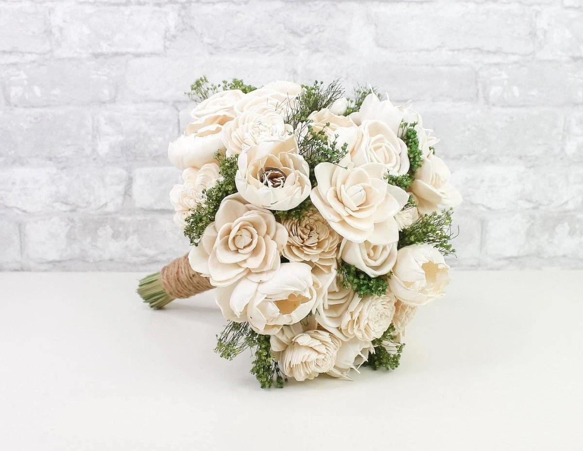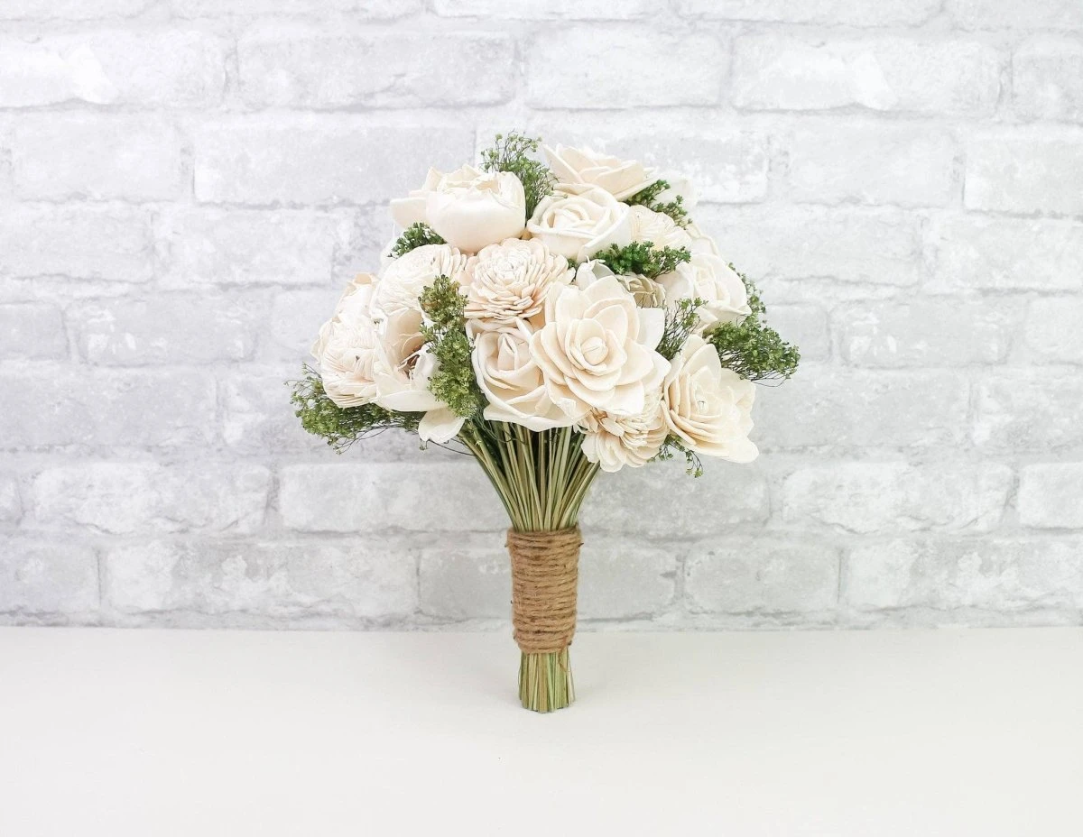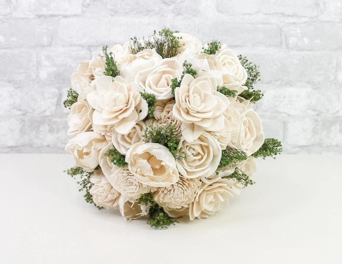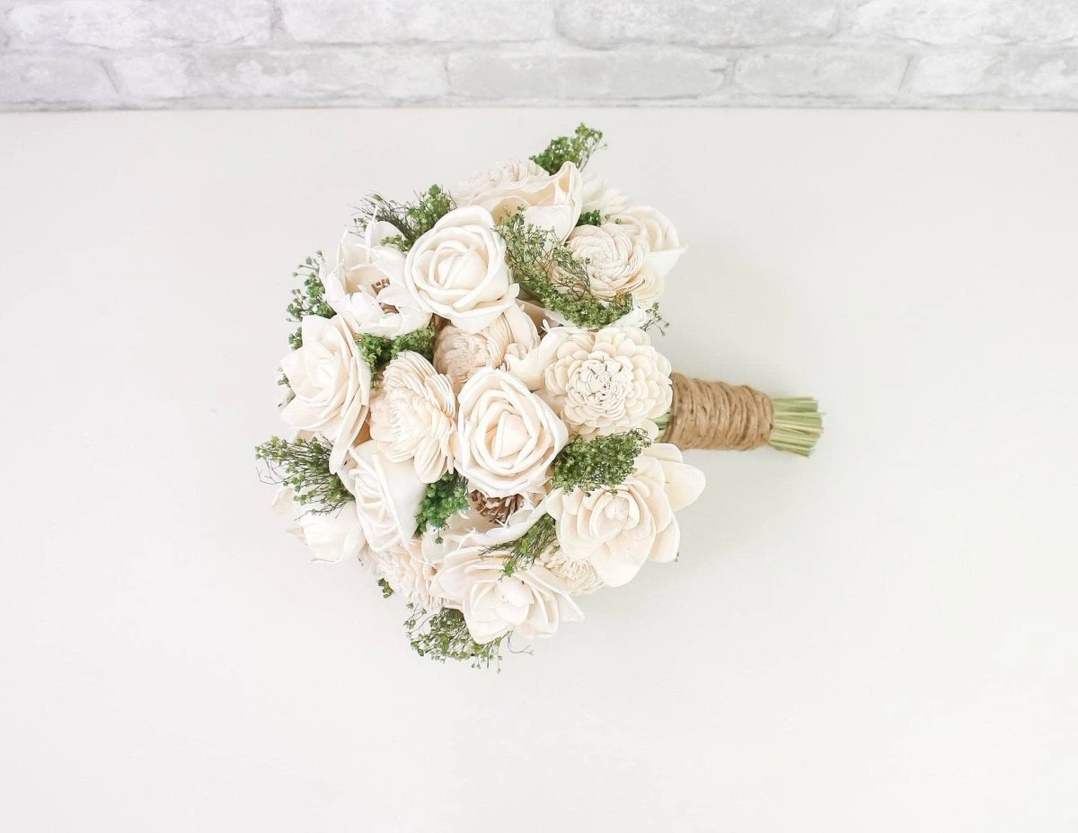 Simple and stunning. The bouquet is made of natural Raw (Undyed) flowers paired with the gorgeous Green Mini Gyp greenery/filler.