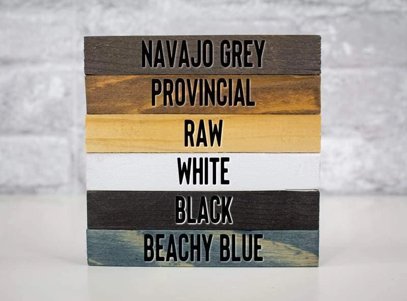 The colors used in the finished example shown are Eggplant, Mauve, Powder Pink, and Raw (No Dye). The stain we used for the centerpiece box is White.