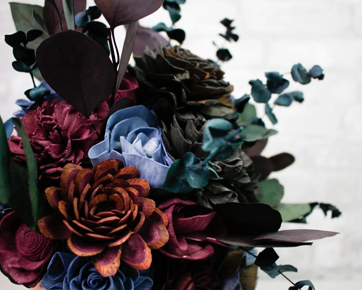 Playfully quaint or fanciful, especially in an appealing way. The combination of sola wood flowers with our Preserved Fillers is completely endearing! Choose from 50+ color options to make this bouquet as unique as you!
