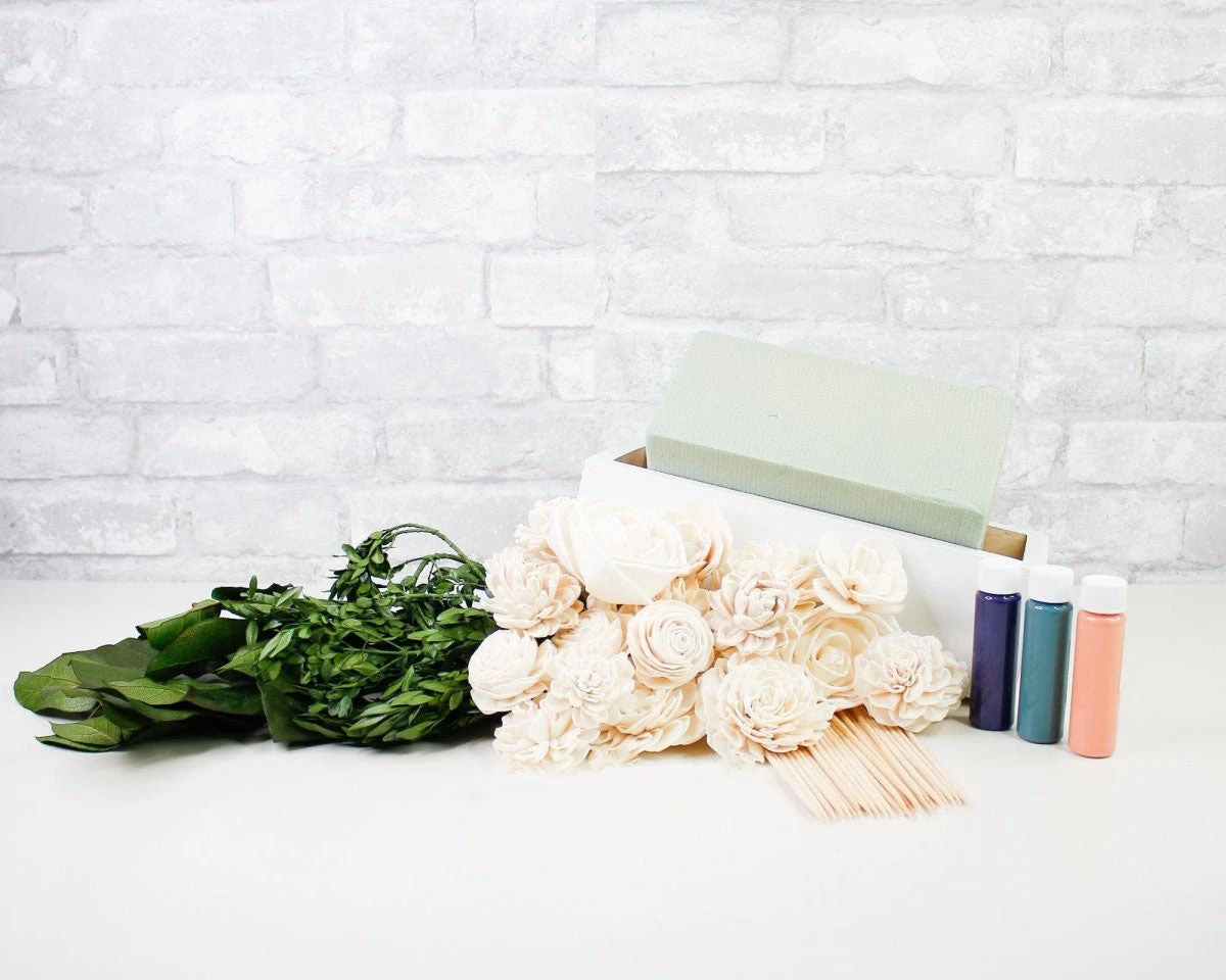 Please note the DIY selection will come as a craft kit and is not a finished product. The finished product in the example is for inspiration only, Flower types and sizes may vary depending on inventory availability.