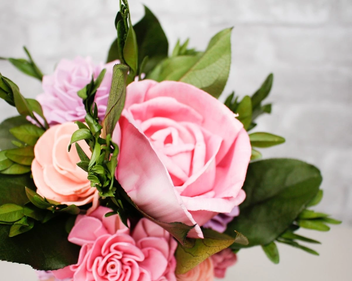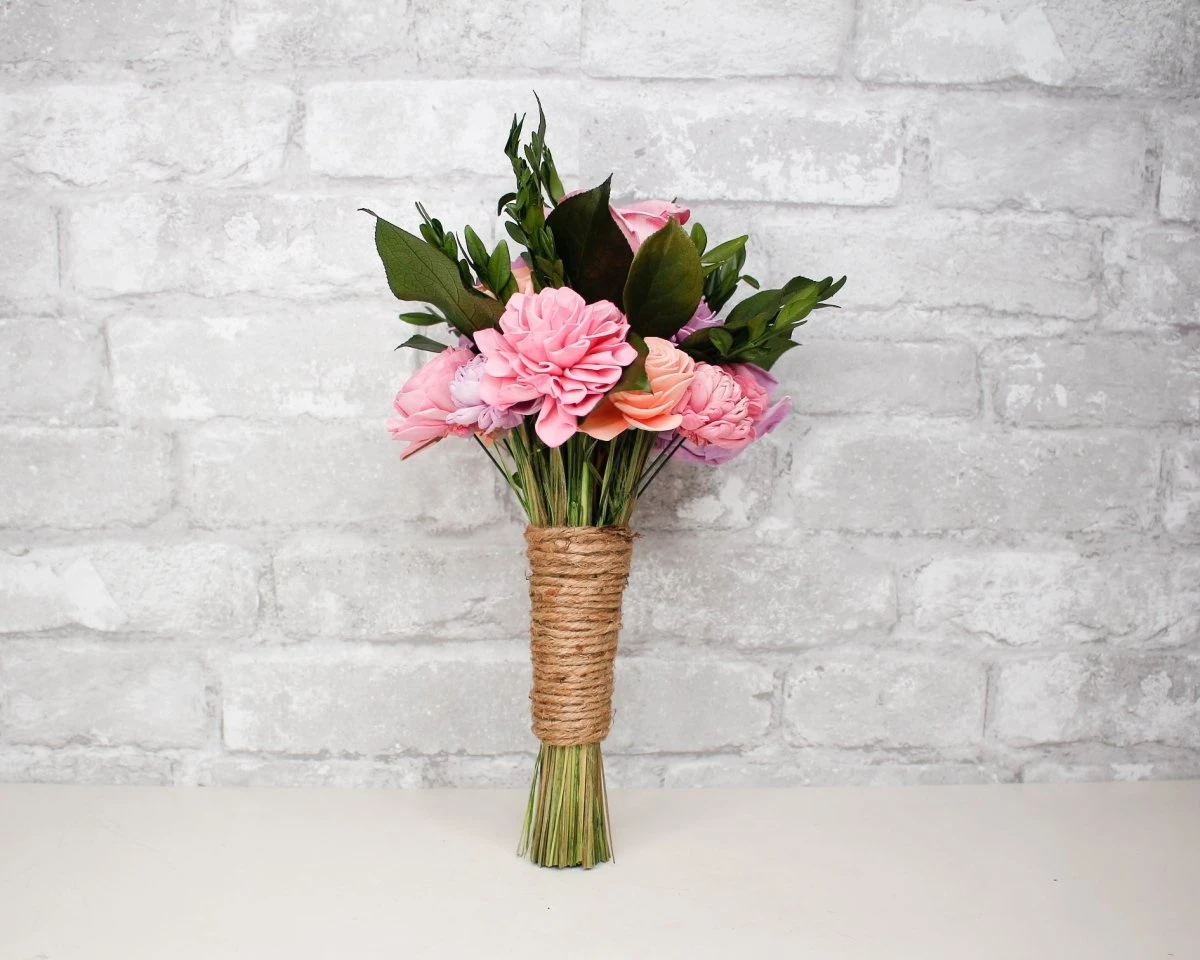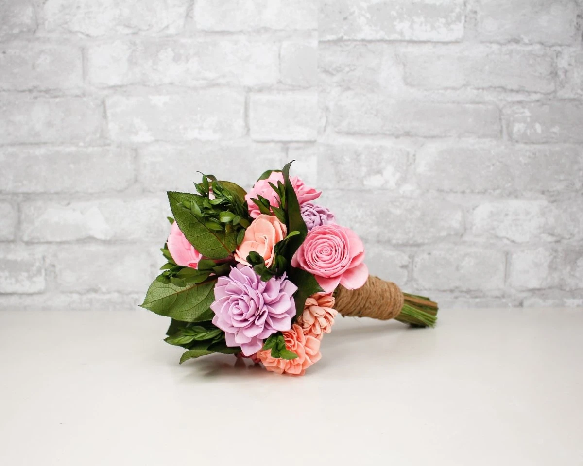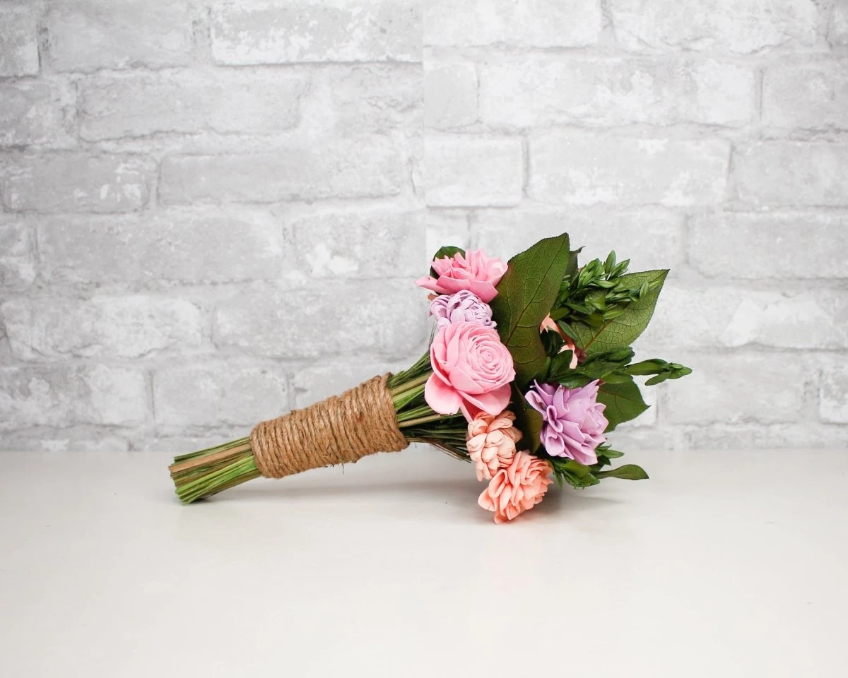 Playfully quaint or fanciful, especially in an appealing way. The combination of sola wood flowers with our Preserved Fillers is completely endearing! Choose from 50+ color options to make this bouquet as unique as you!