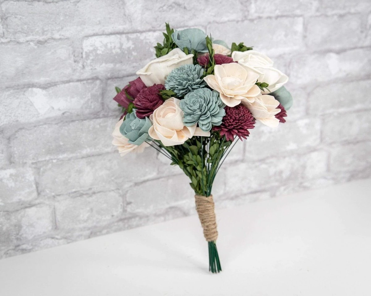 The Boxwood Bouquet! This bouquet is simply stunning. With our best selling fillers- Boxwood and Baby’s Breath – combined with wood flowers this bouquet is sure to please! Customize the colors to match whatever color scheme you’re going for!