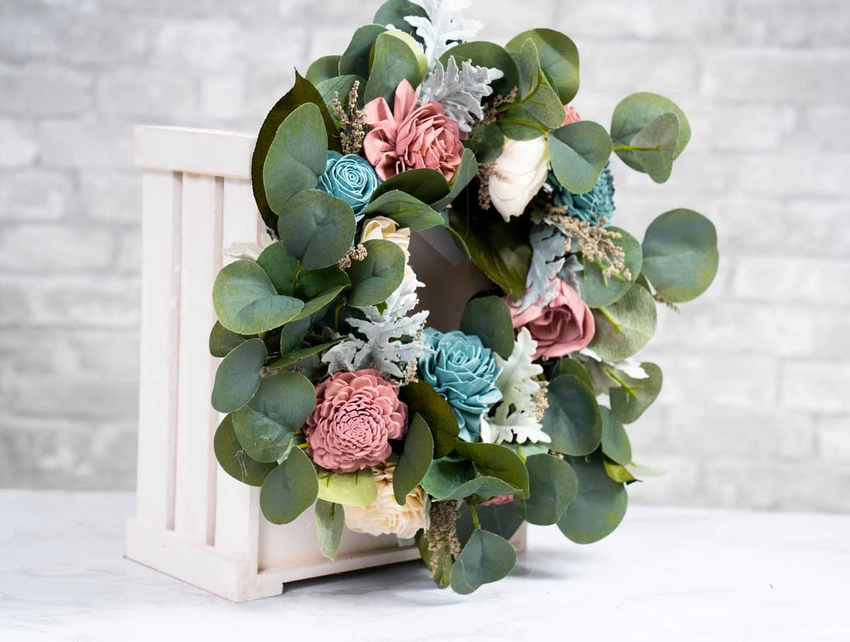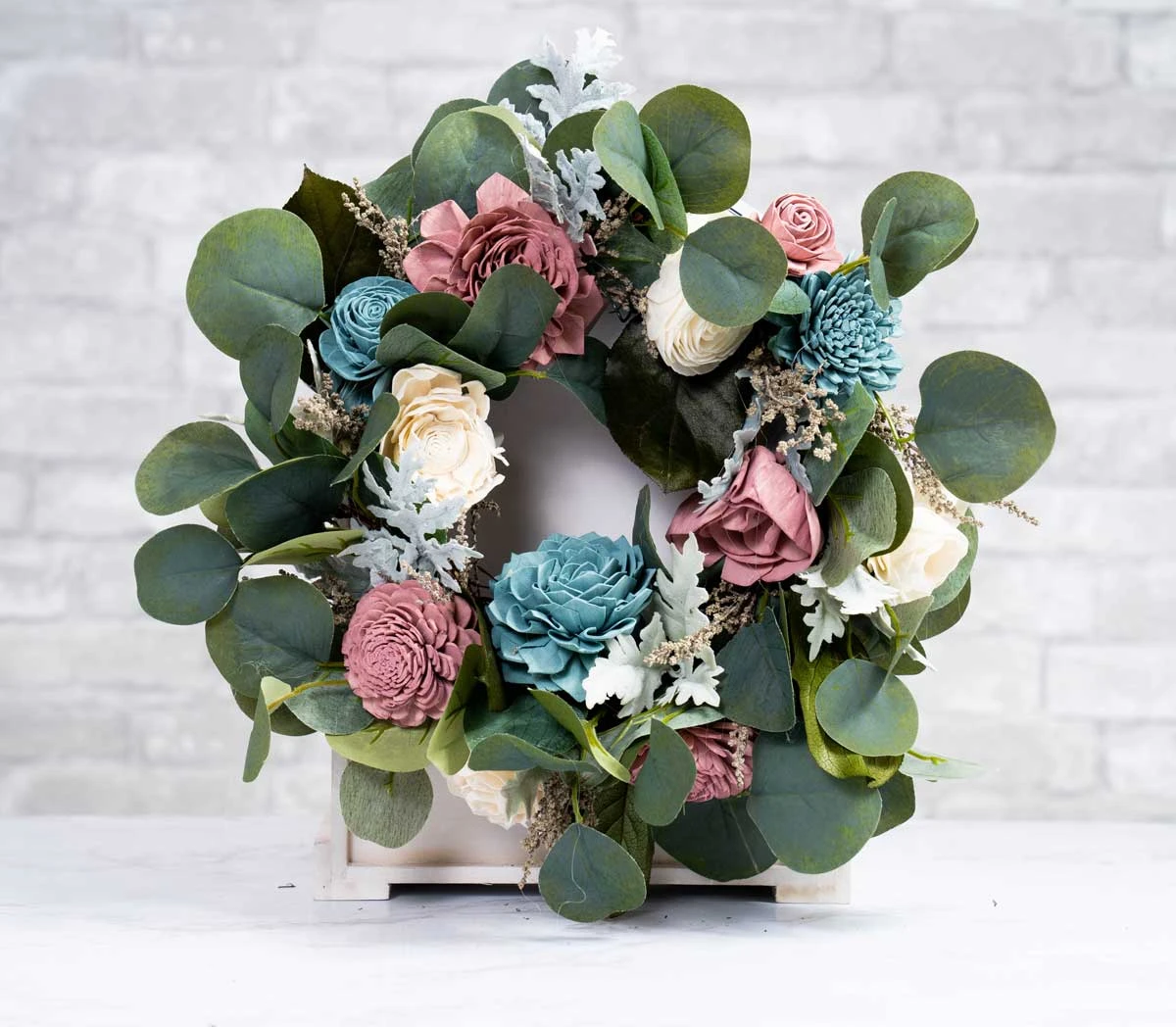 Add Sola Wood Flowers, additional fillers, or whatever else you can think of. The wreath would be perfect for weddings, or just adding to your existing home decor!