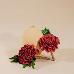 Boutonniere Set 6 – The color used is Burgundy. The filler used is Leather Leaf.