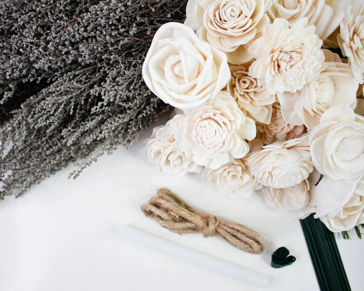 Our all time favorite filler is featured in this gorgeous bridesmaid bouquet kit. The Diana Bridesmaid Bouquet is perfect for the DIY bride planning her wedding. The silver caspia filler is perfectly paired with our sola wood flowers for a glamor themed arrangement. We chose to go with a few classic colors for our arrangement, but the neutral filler is sure to compliment any color scheme you’re working with!