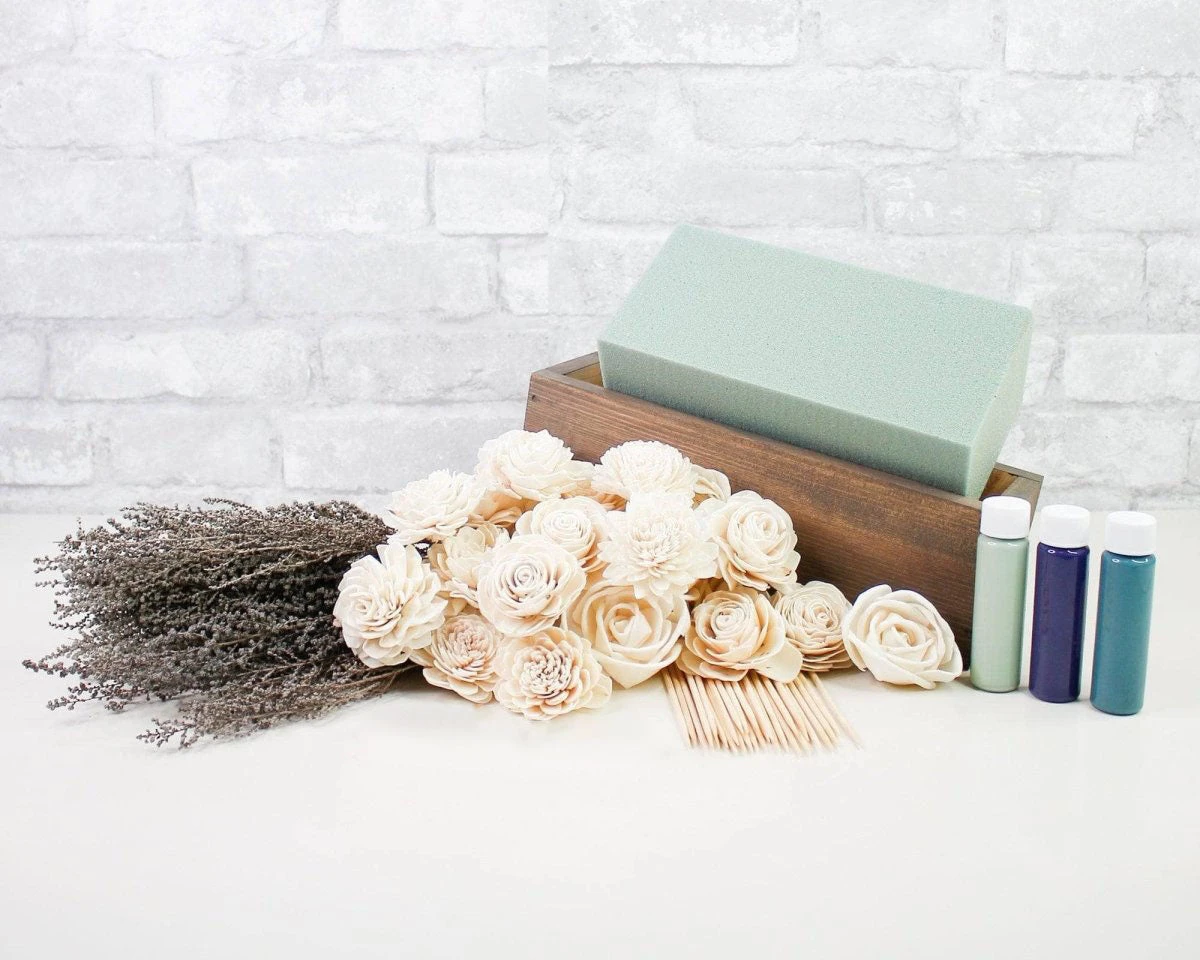Decorate your home, office, or wedding with this gorgeous centerpiece craft kit! The silver caspia filler is perfectly paired with our sola wood flowers for a glamor themed arrangement. We chose to go with a few classic colors for our arrangement, but the neutral filler is sure to compliment any color scheme you’re working with!