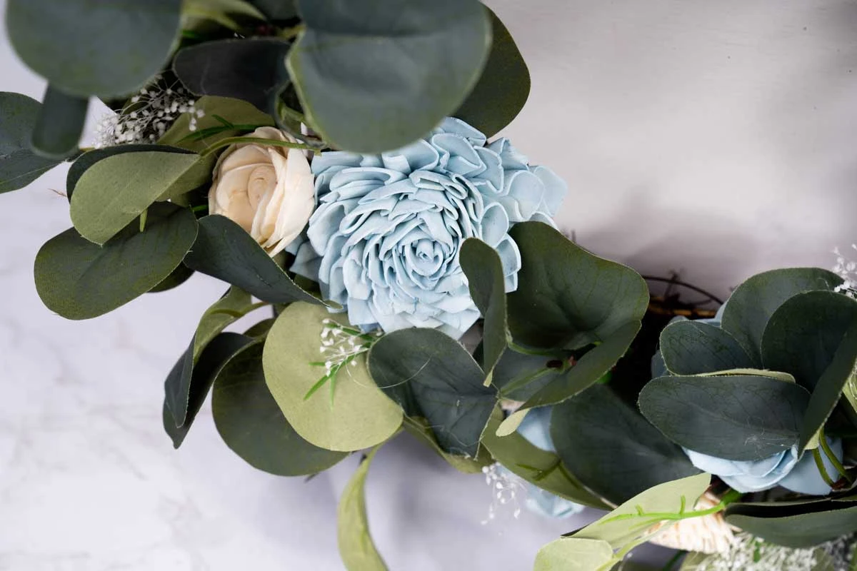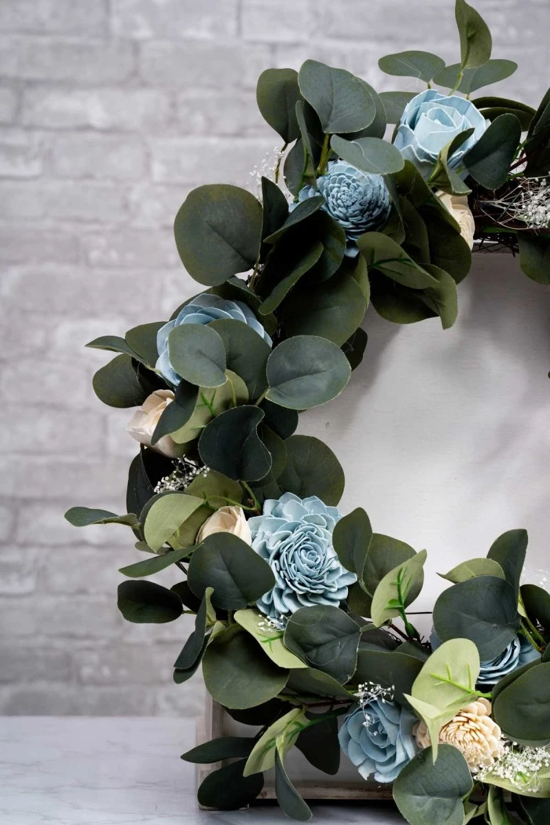 Add Sola Wood Flowers, additional fillers, or whatever else you can think of. The wreath would be perfect for weddings, or just adding to your existing home decor!
