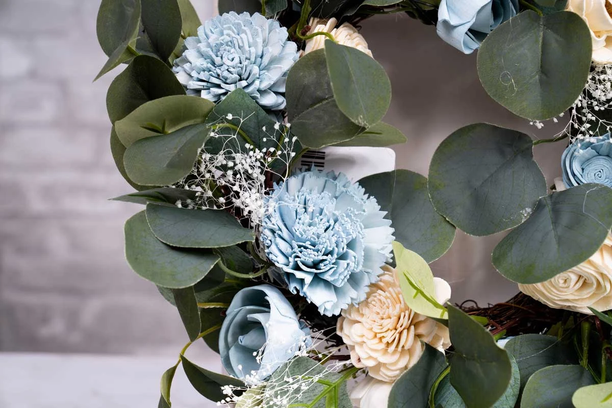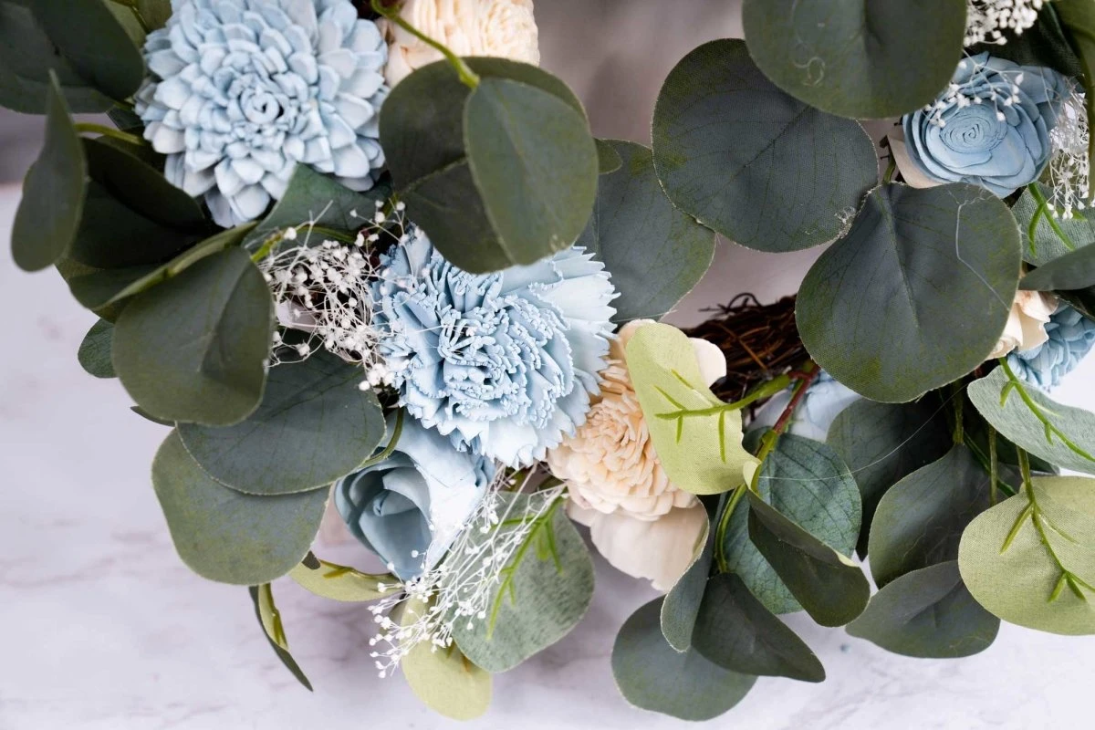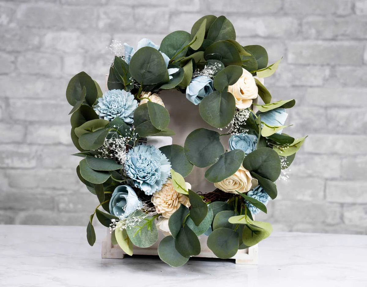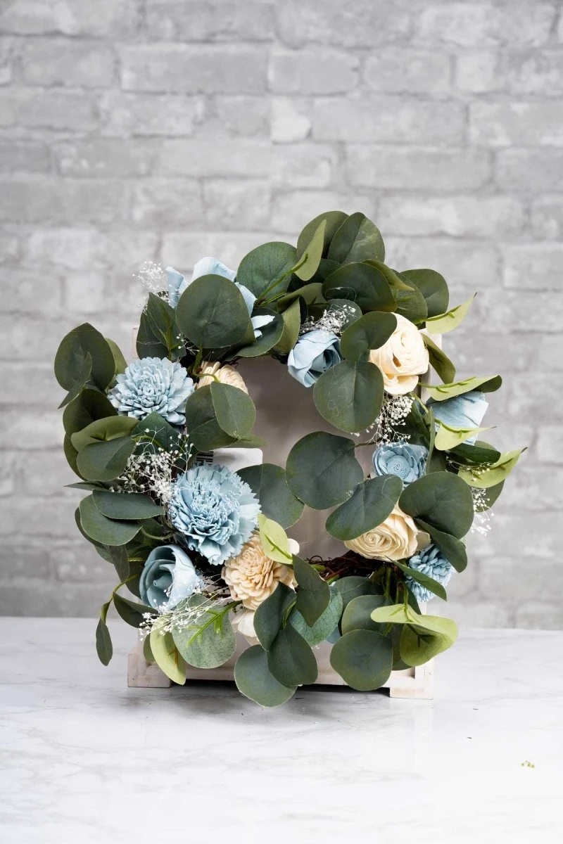 Add Sola Wood Flowers, additional fillers, or whatever else you can think of. The wreath would be perfect for weddings, or just adding to your existing home decor!