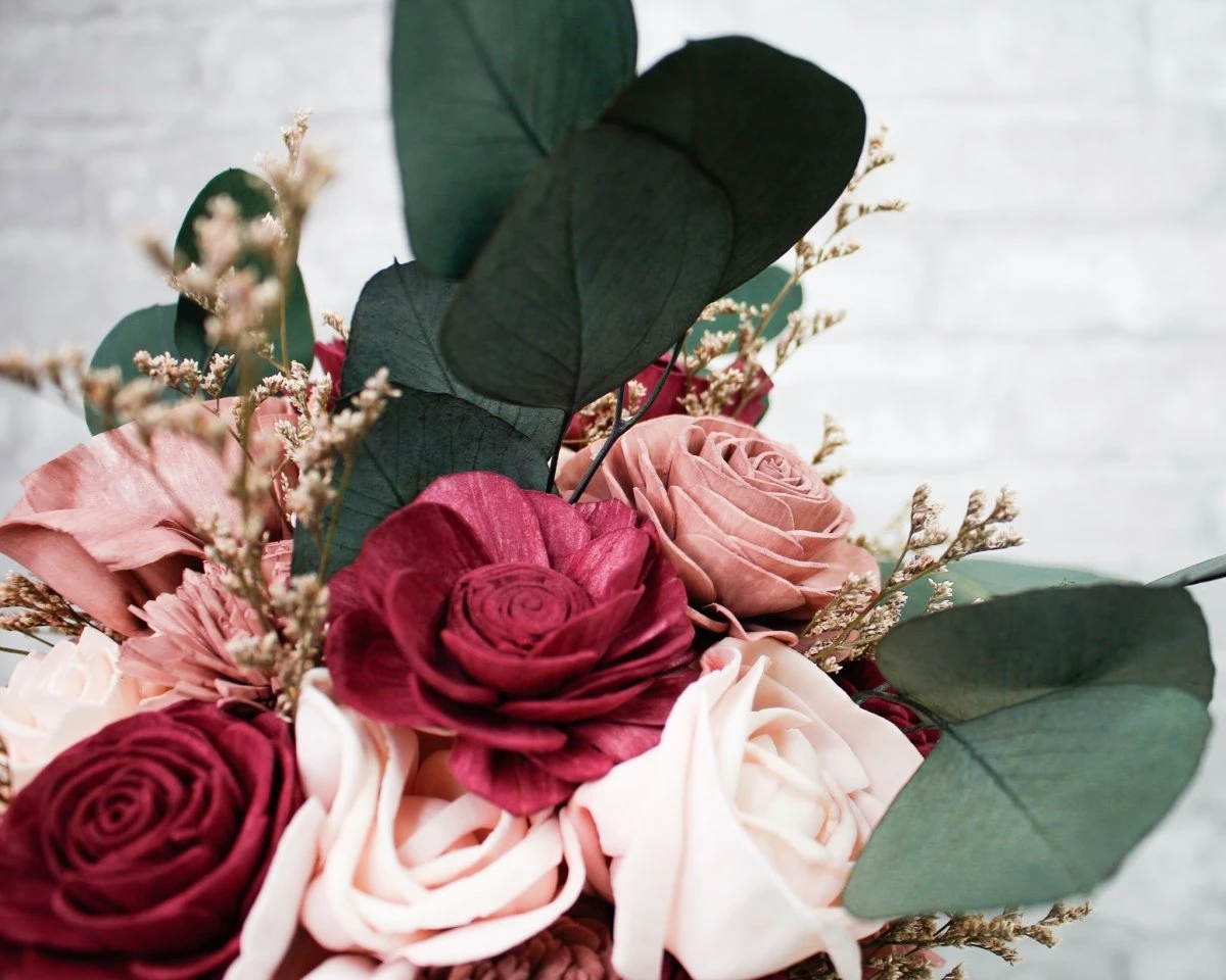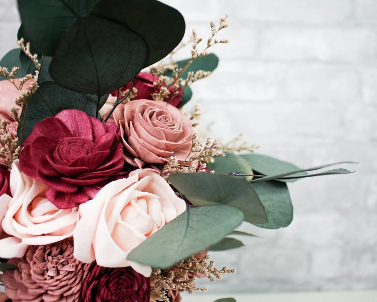 Playfully quaint or fanciful, especially in an appealing way. The combination of sola wood flowers with our Preserved Fillers is completely endearing! Choose from 50+ color options to make this bouquet as unique as you!