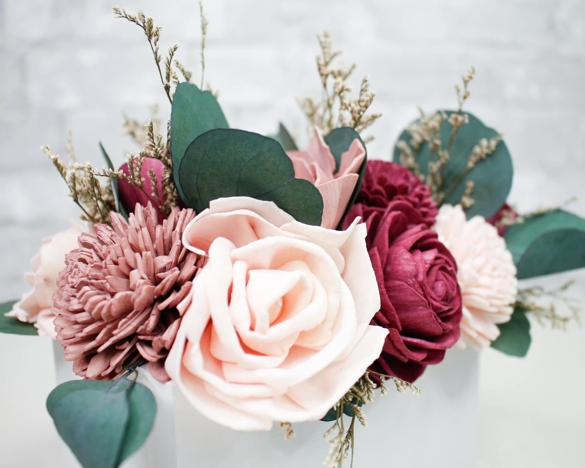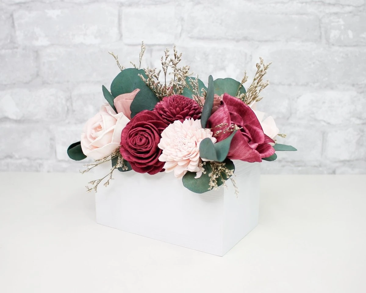 This gorgeous centerpiece is perfect for any event! Decorate your home with gorgeous wood flowers, or use this centerpiece as decor on your big day!