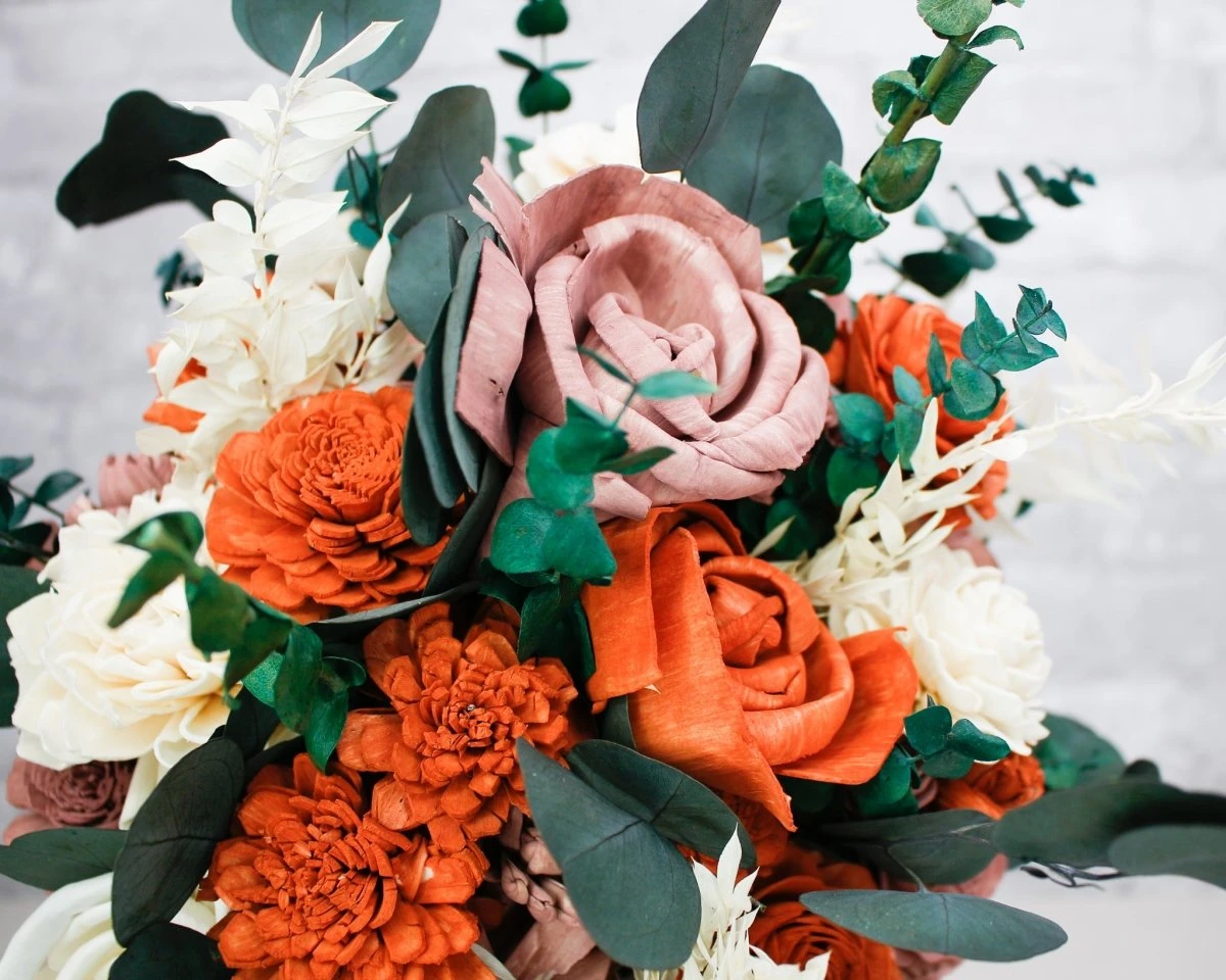 This Bridal bouquet is absolutely gorgeous. The beautiful assortment of sola wood flowers is perfectly paired with three of our most popular fillers.