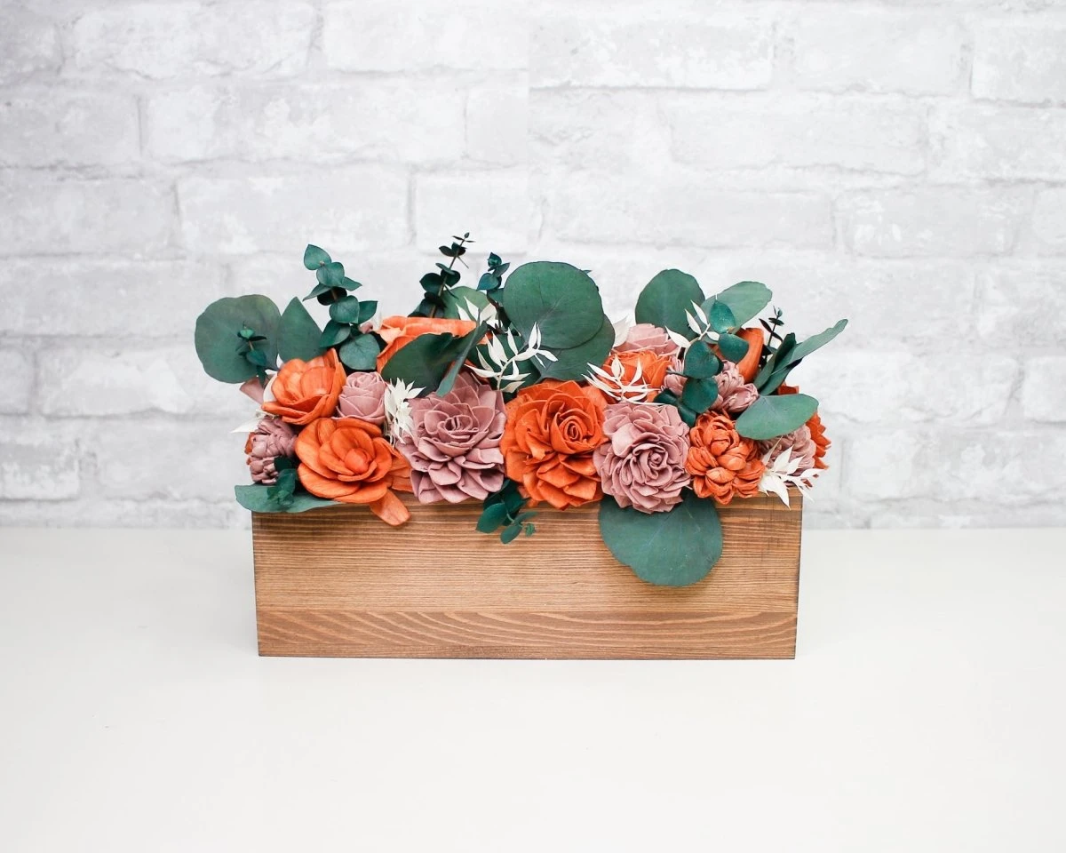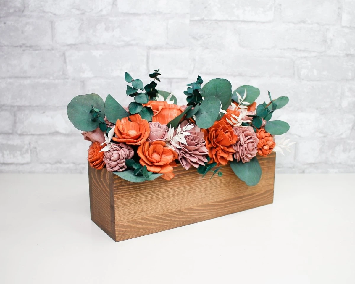 This gorgeous centerpiece is perfect for any event! Decorate your home with gorgeous wood flowers, or use this centerpiece as decor on your big day!