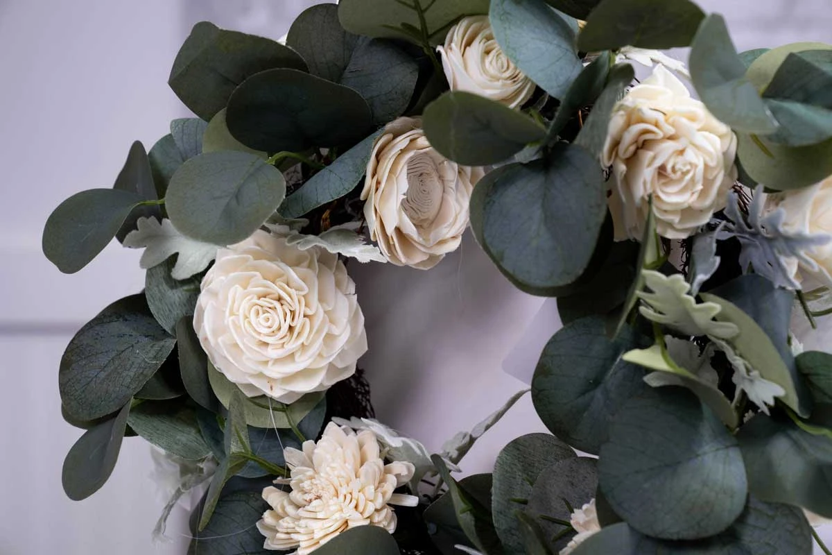 Add Sola Wood Flowers, additional fillers, or whatever else you can think of. The wreath would be perfect for weddings, or just adding to your existing home decor!