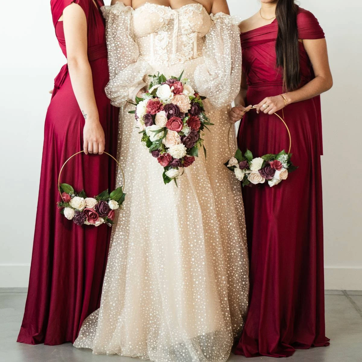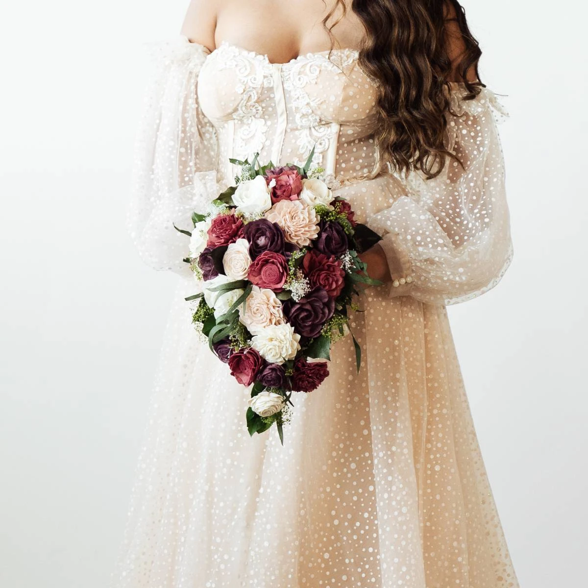 This bouquet kit includes everything you need to create a gorgeous cascading bouquet. You can choose from our 50+ color options to match whatever aesthetic you’re going for!