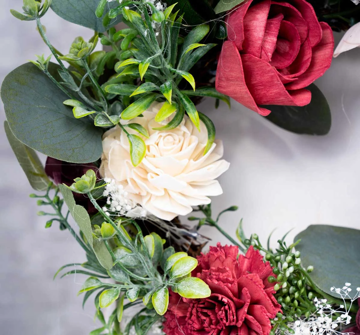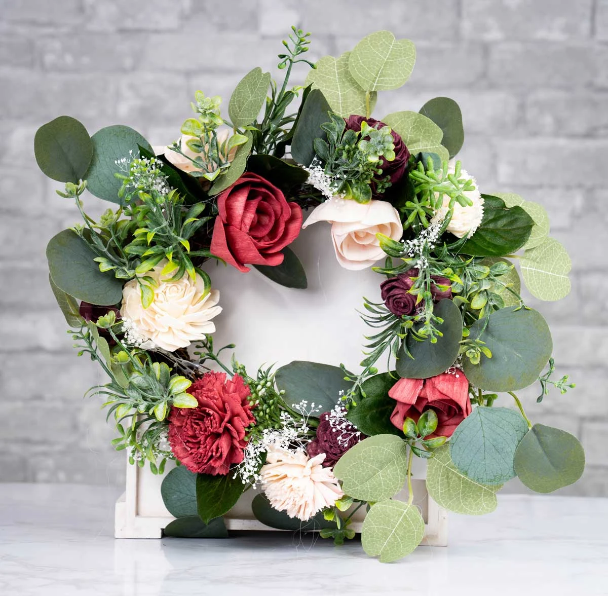 Add Sola Wood Flowers, additional fillers, or whatever else you can think of. The wreath would be perfect for weddings, or just adding to your existing home decor!