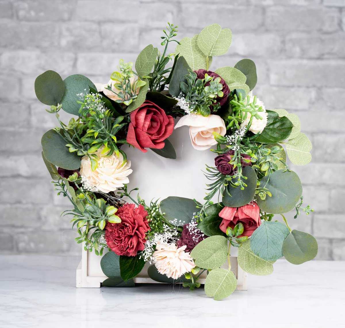 The images are for illustration purposes only. Flower types and sizes may vary depending on inventory availability. You will receive a kit with everything you need to create your wreath.