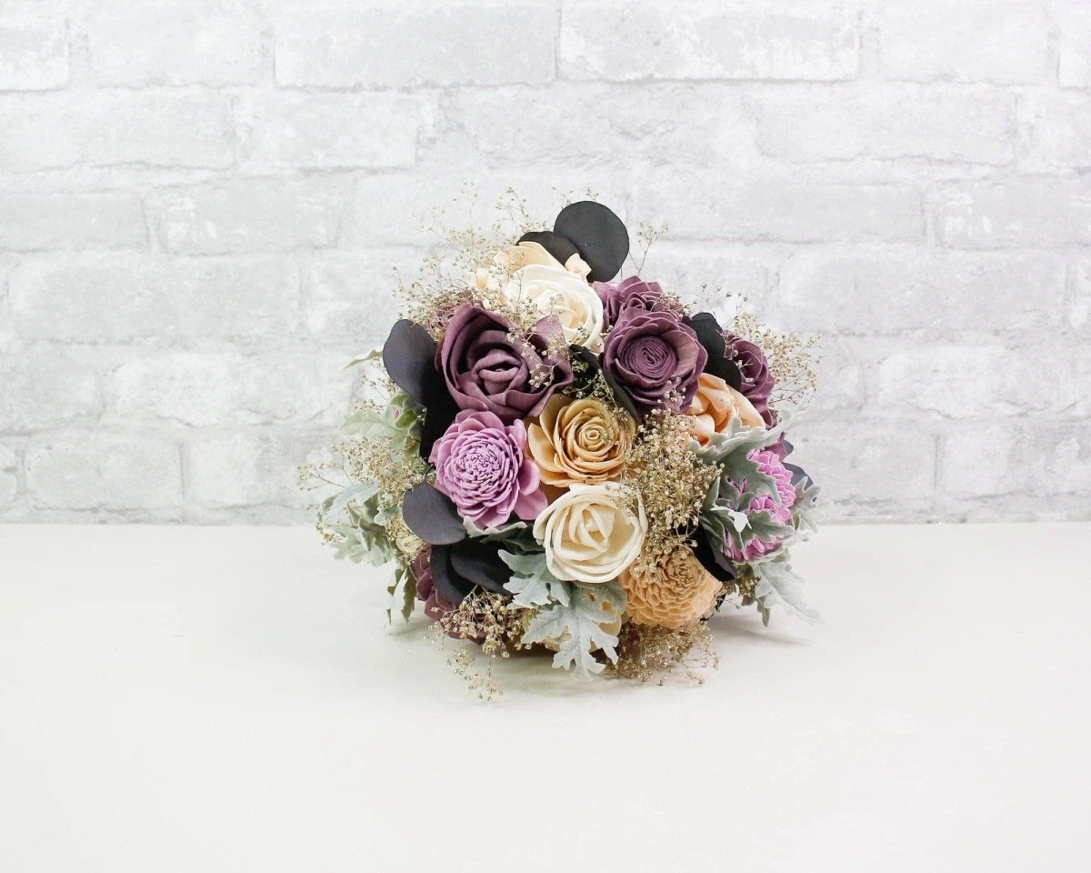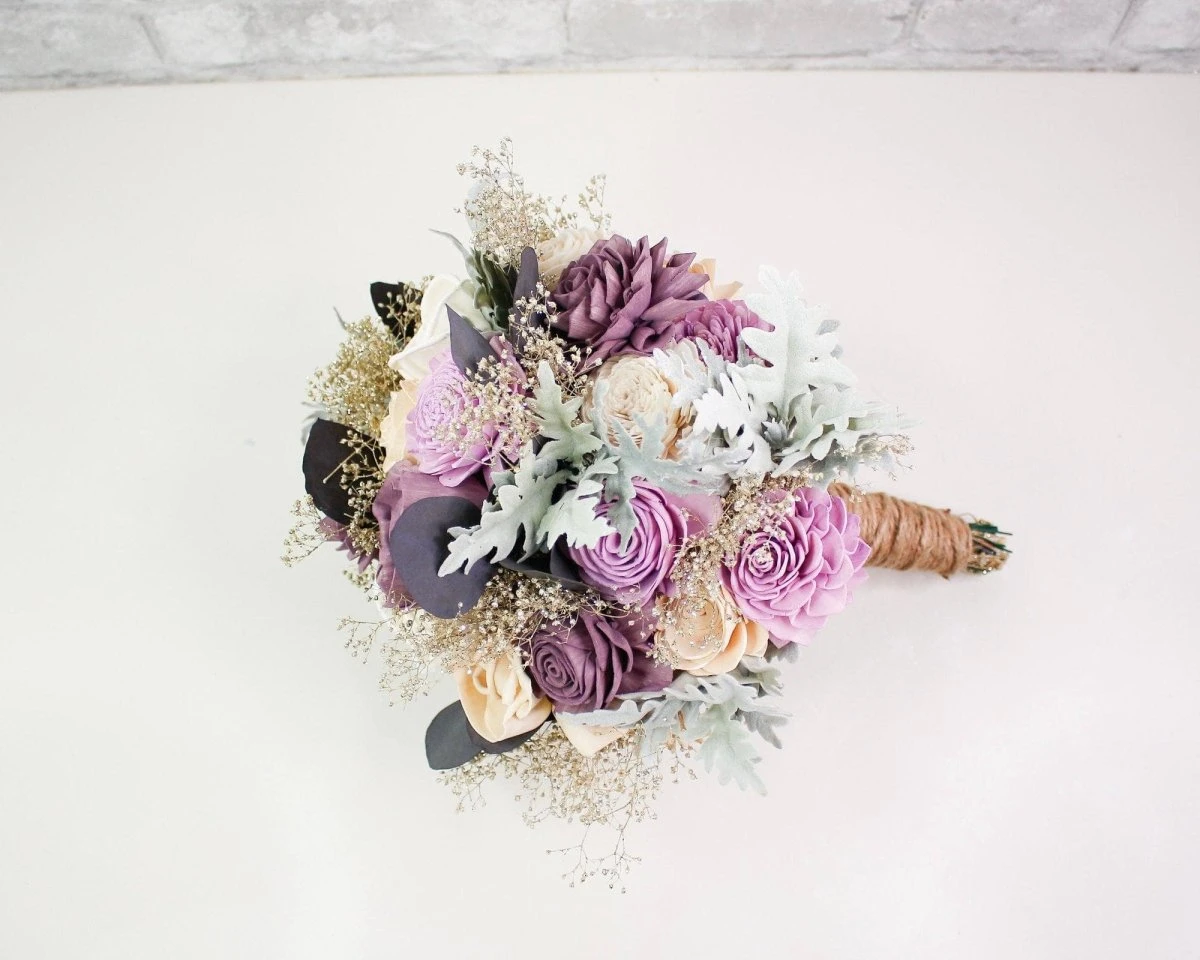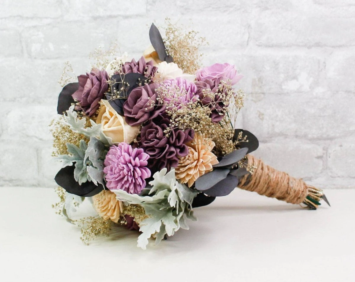 No ruffles or puffy sleeves for the gorgeous bridesmaid, only fluffy wooden flowers in this gorgeous sola flower bouquet!
