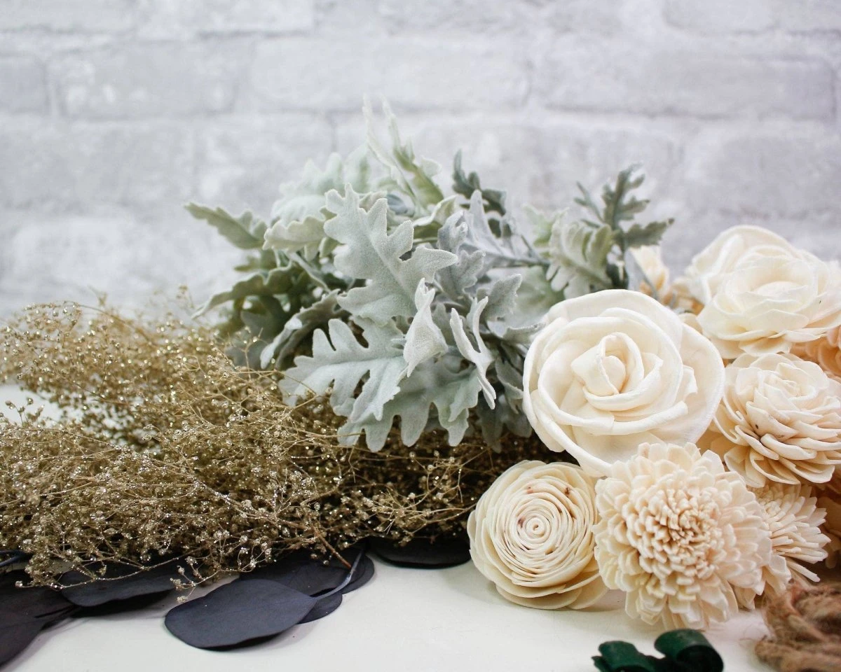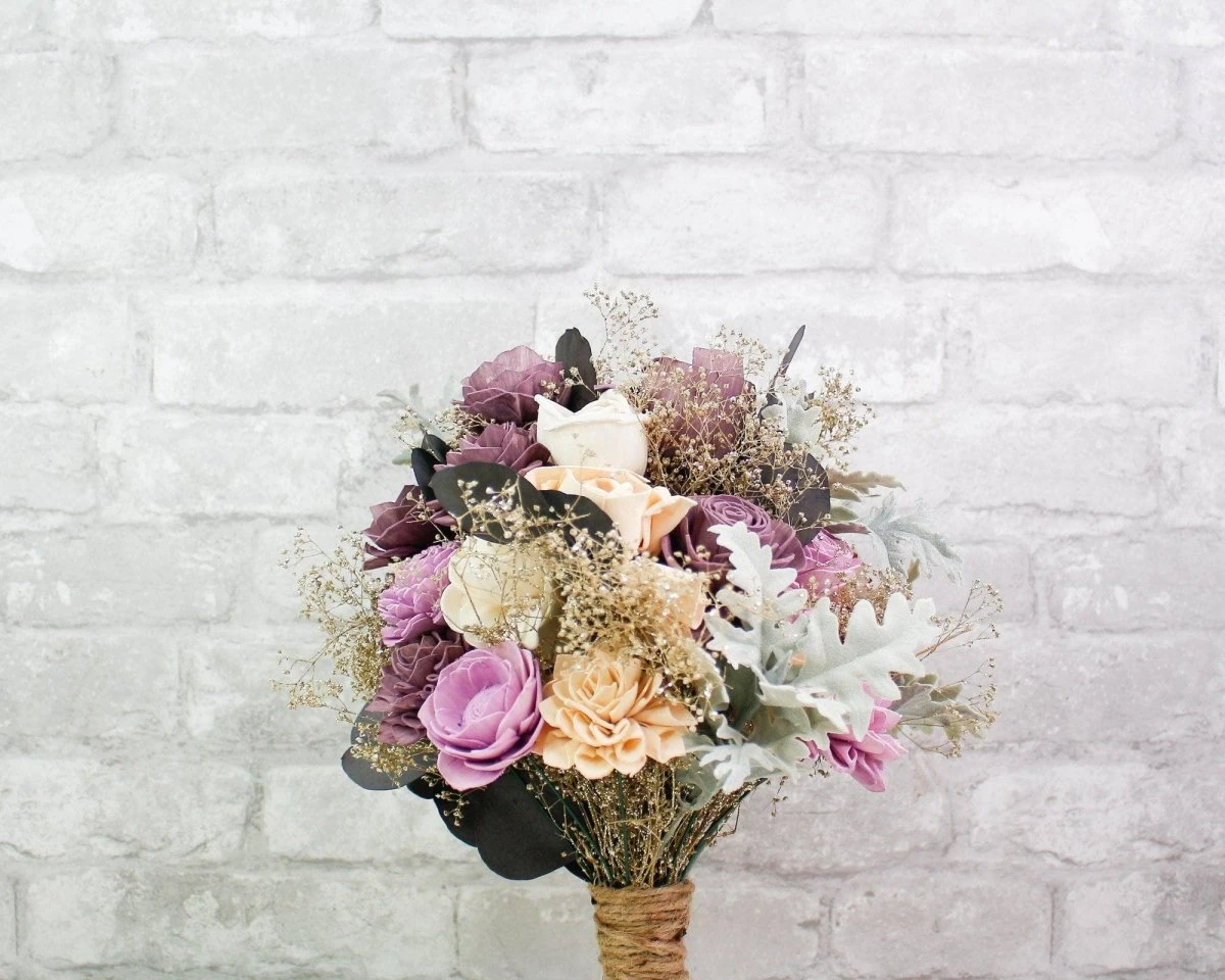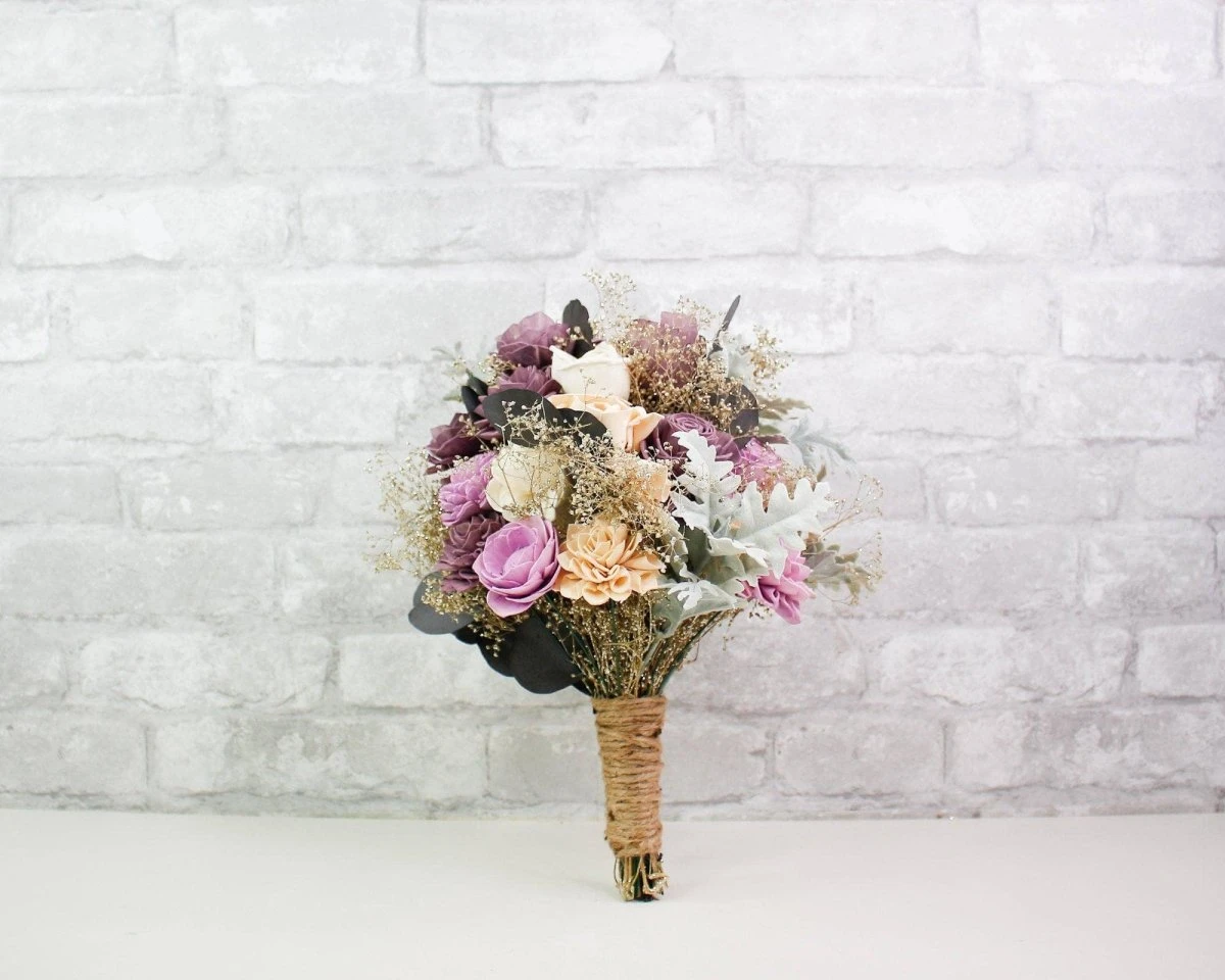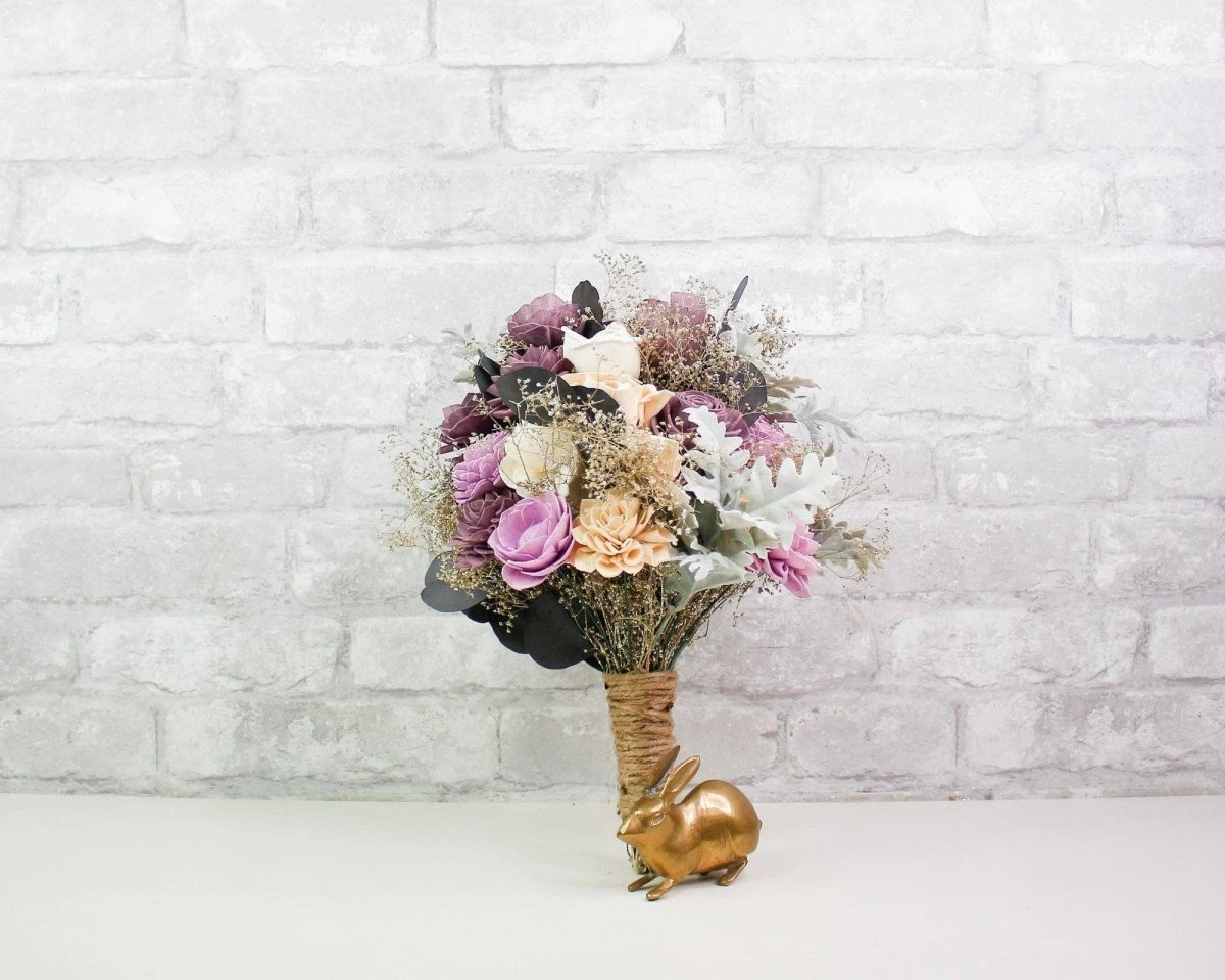 No ruffles or puffy sleeves for the gorgeous bridesmaid, only fluffy wooden flowers in this gorgeous sola flower bouquet!