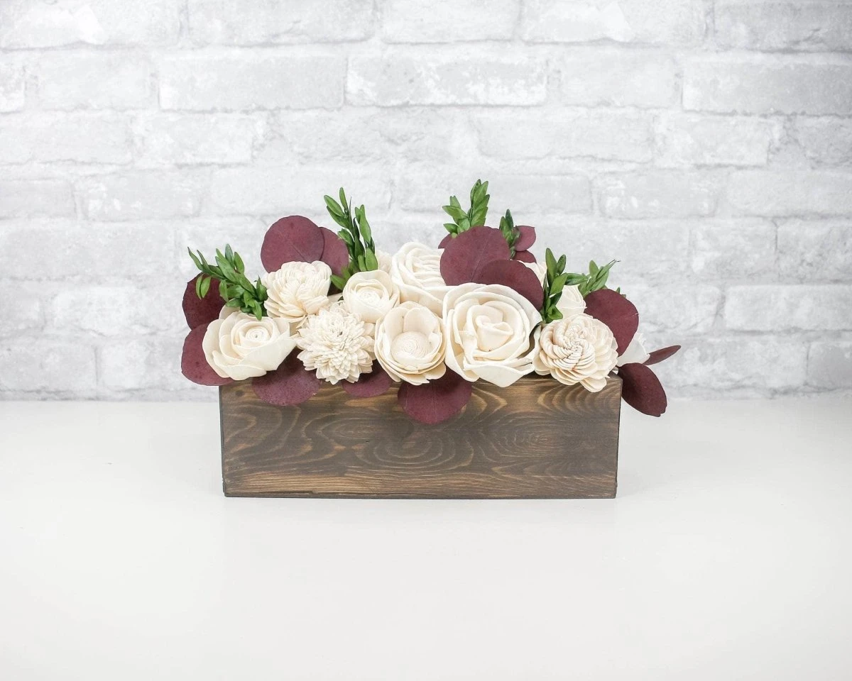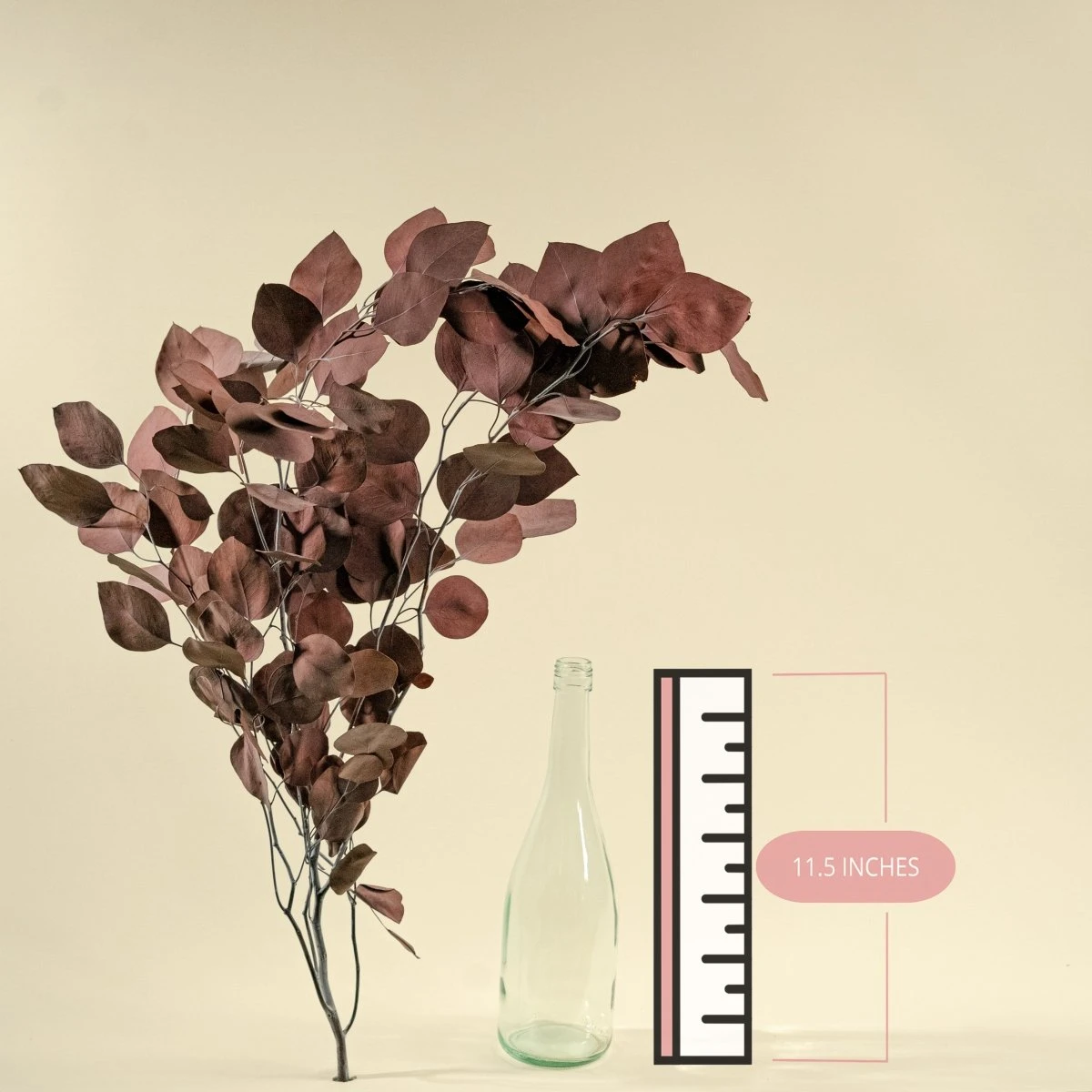 The finished examples shown are for inspiration. The purchase of this product is for the Preserved Silver Dollar Eucalyptus – Burgundy only.