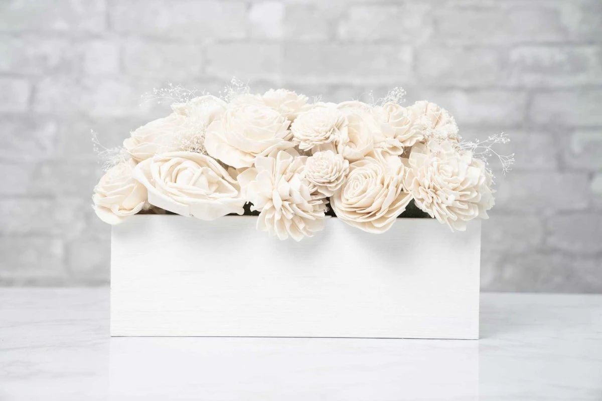 - Medium Rectangle Centerpiece Box In White – 3.5″ x 3.5″ x 10.75″