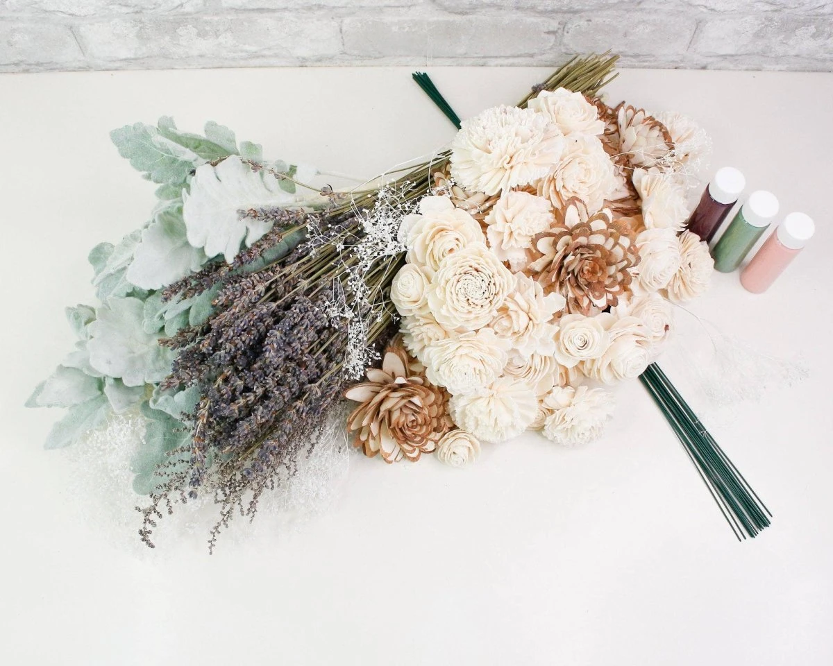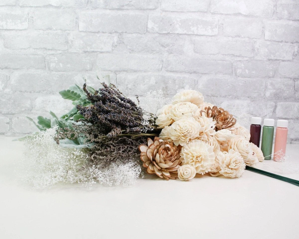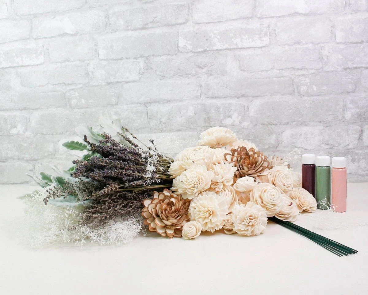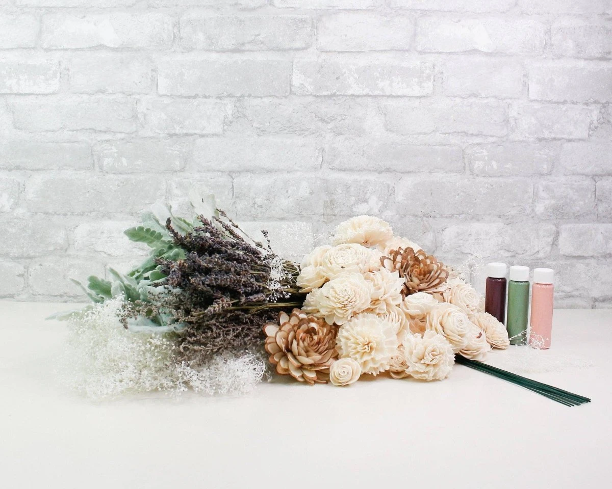 This Bridal bouquet is an absolute beauty. The beautiful assortment of sola wood flowers is perfectly paired with our most popular preserved fillers giving this kit a larger than life look! This kit is romantic and perfect to help you tell your love story.