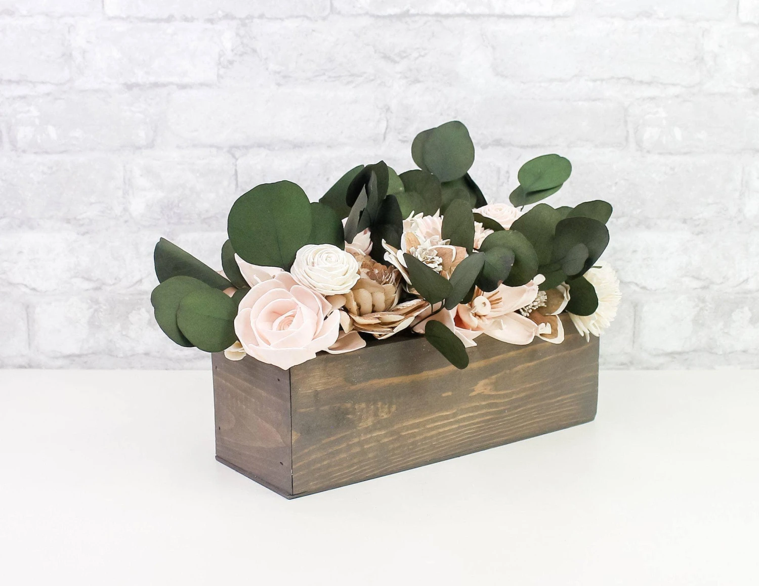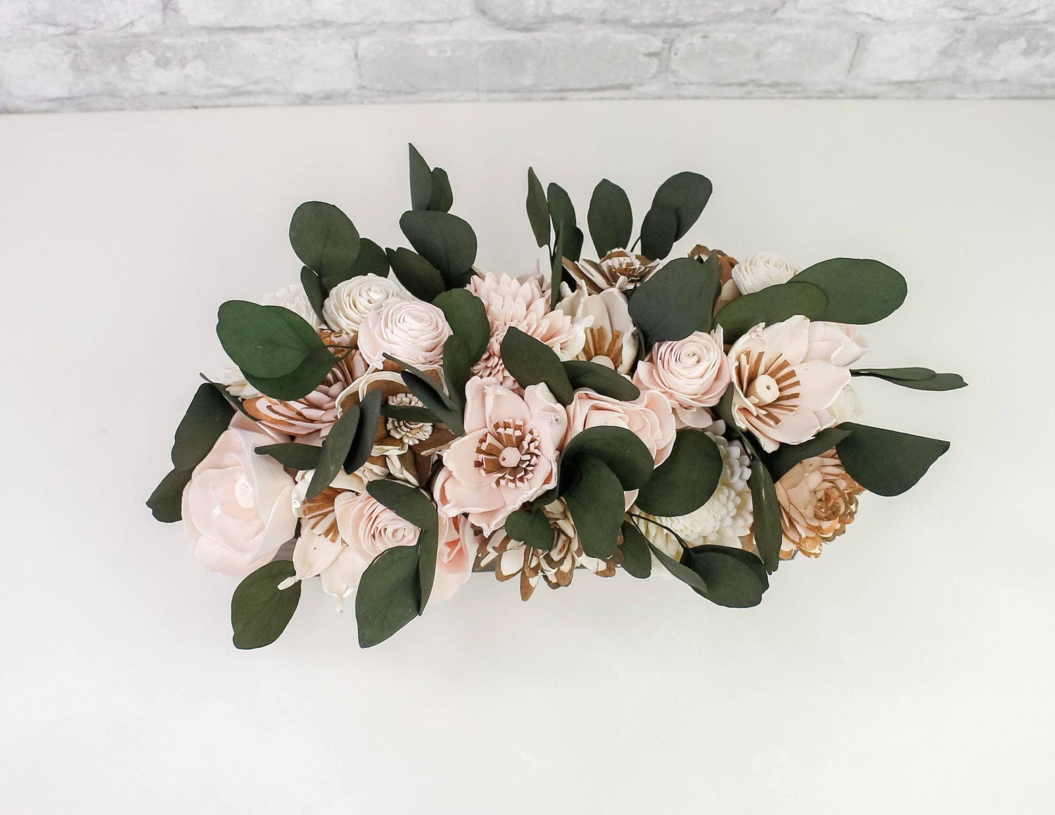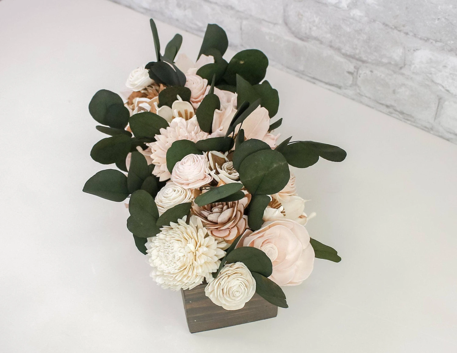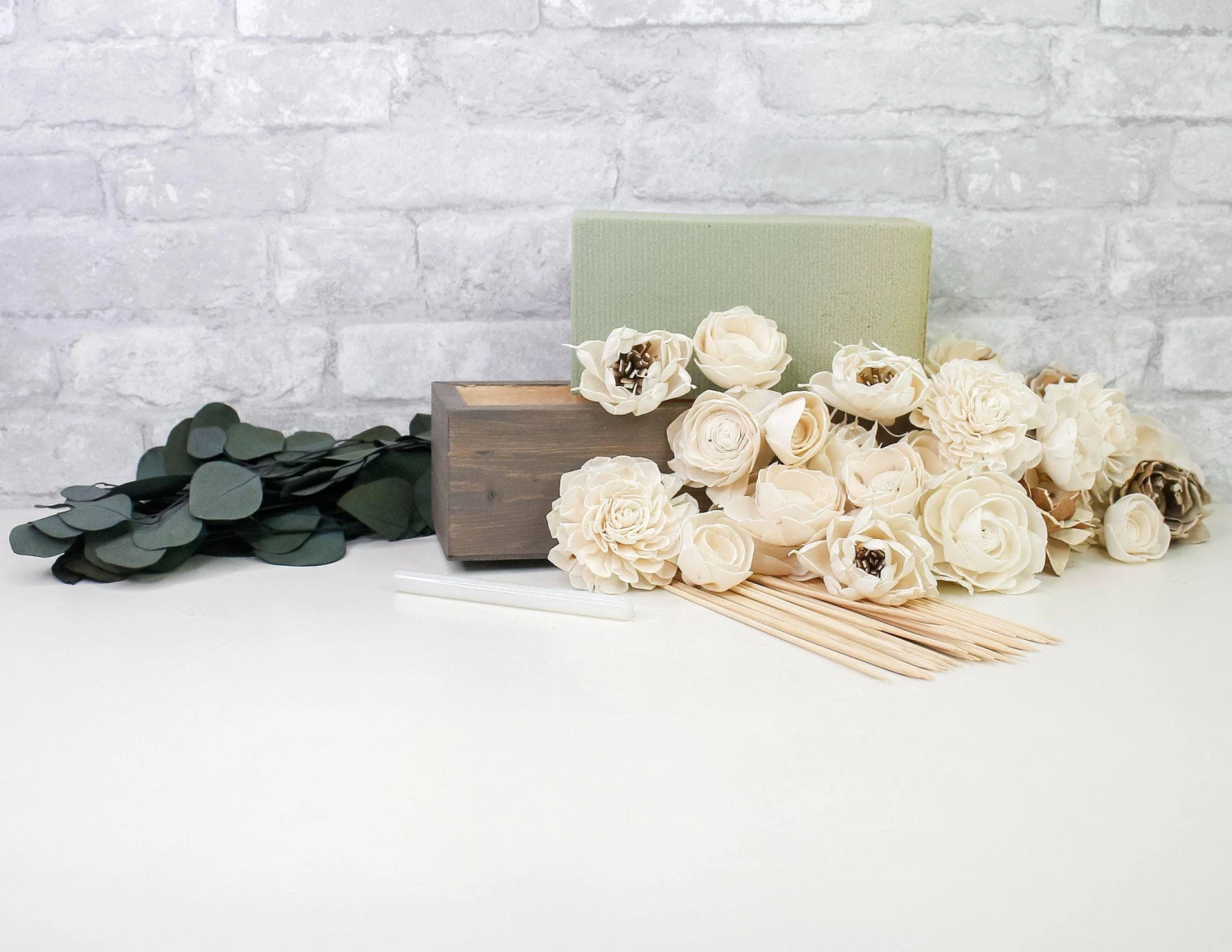 Our all time favorite filler is featured in this centerpiece craft kit. . This kit is perfect for the DIY bride planning her wedding. The gorgeous silver dollar eucalyptus is paired with a stunning assortment of sola wood flowers! Choose from our 50+ color options to match your wedding color scheme!