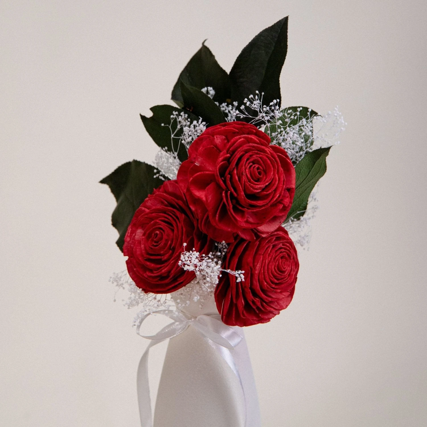 The gift Wrapped True Love Bouquet is absolutely gorgeous. The beautiful Aurora flowers dyed in the Brick Red color are perfectly paired with 2 of our most popular Preserved Silver Dollar Eucalyptus – Green and Satin Washed Eucalyptus – Kelly Green preserved greenery/fillers giving this bouquet a larger than life look!