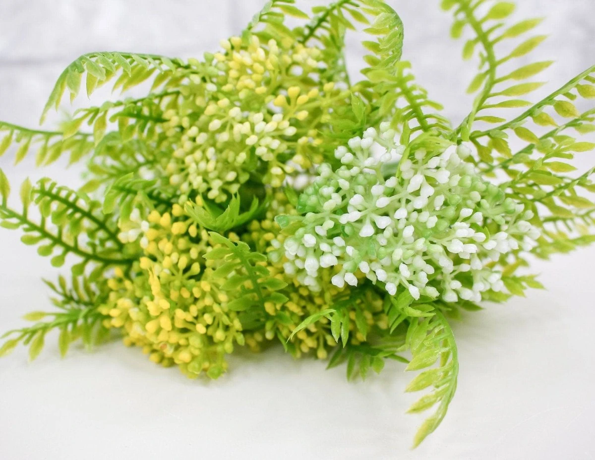 This beautiful white/yellow skimmia bush faux filler is perfect for adding a pop of color to any Sola Wood Flower arrangement.