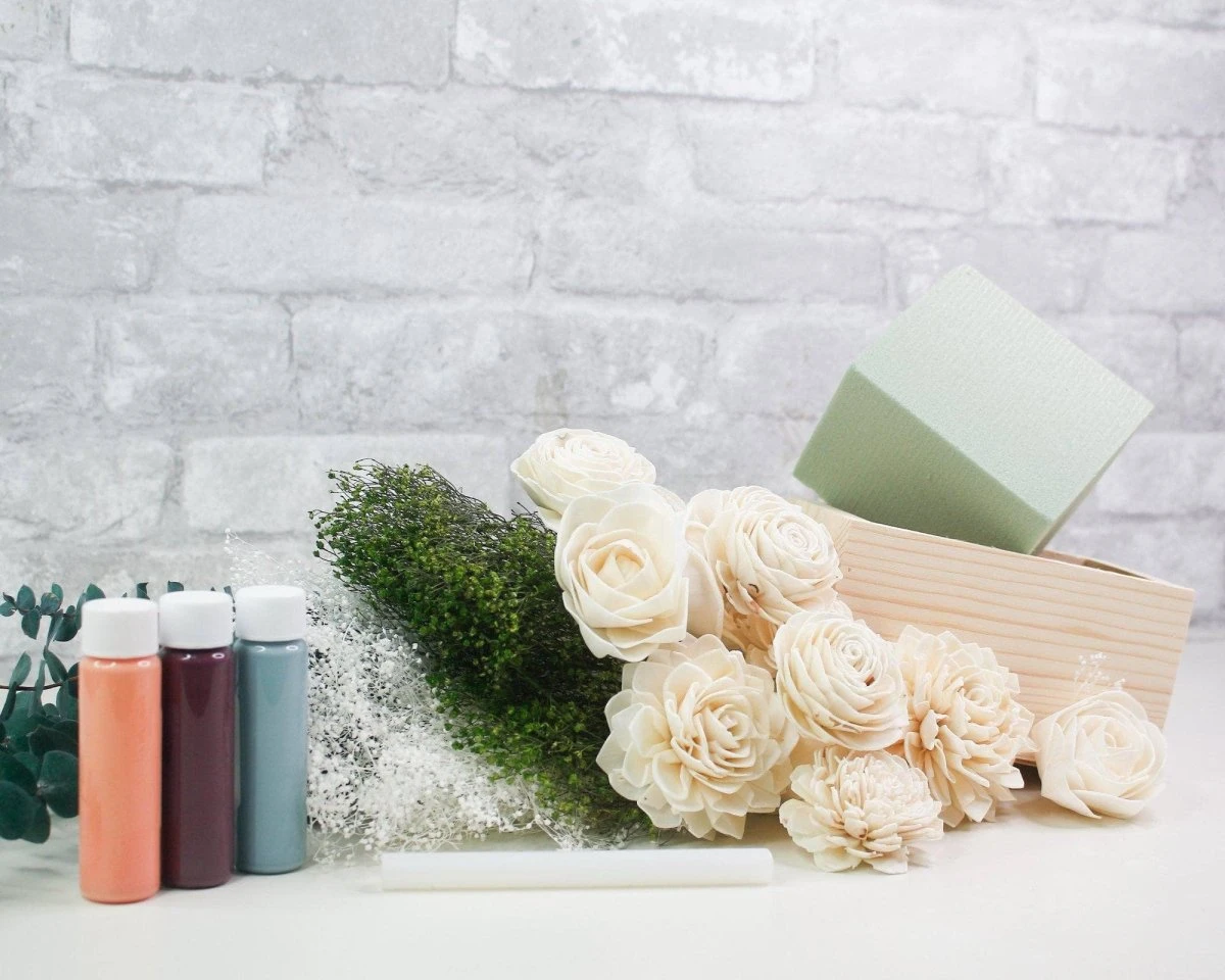 Decorate your home, office, or wedding with this gorgeous centerpiece craft kit! The perfect combination of our fillers and beautiful sola wood flowers.