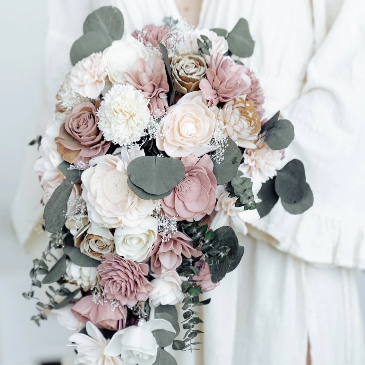 This bouquet kit includes everything you need to create a gorgeous cascading bouquet. You can choose from our 50+ color options to match whatever aesthetic you’re going for!
