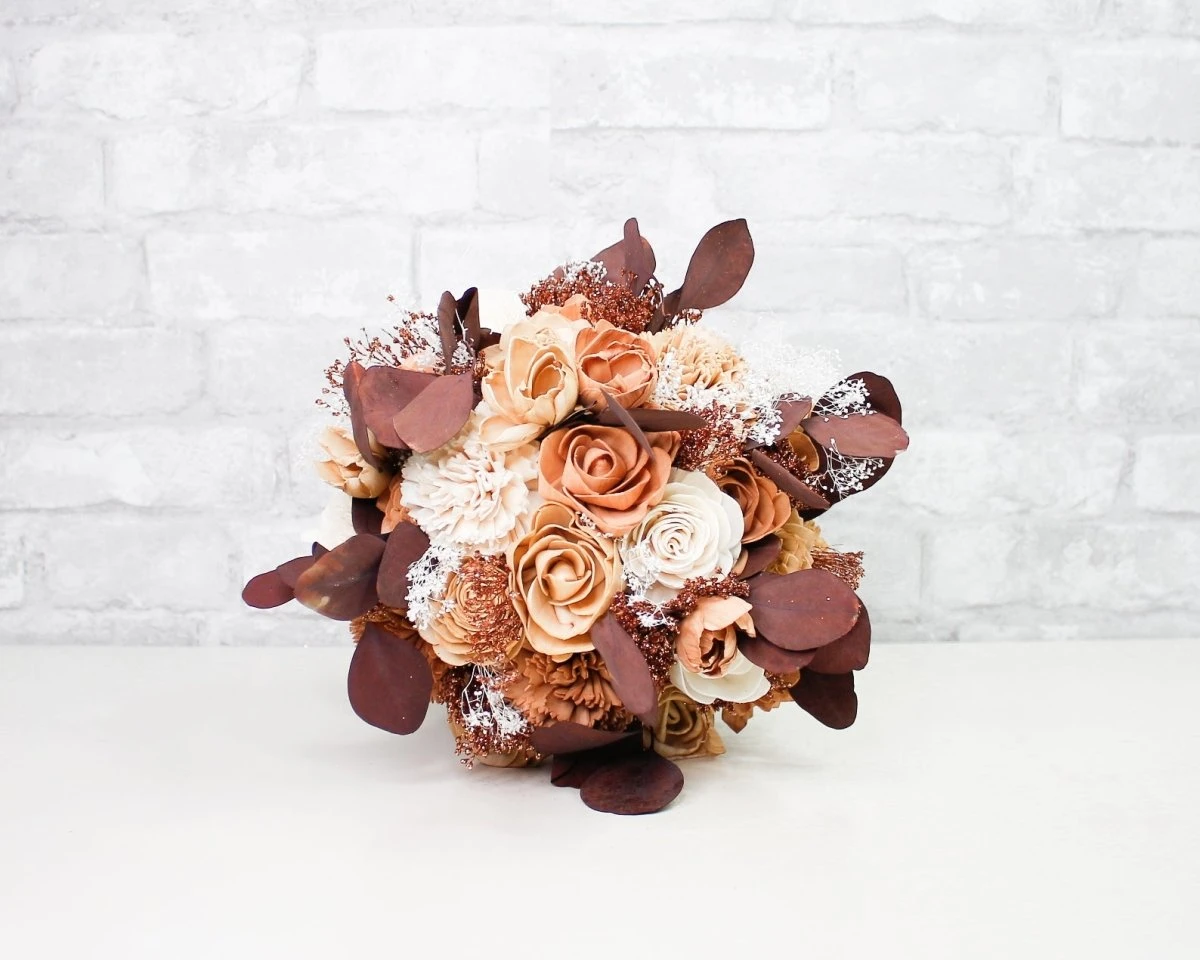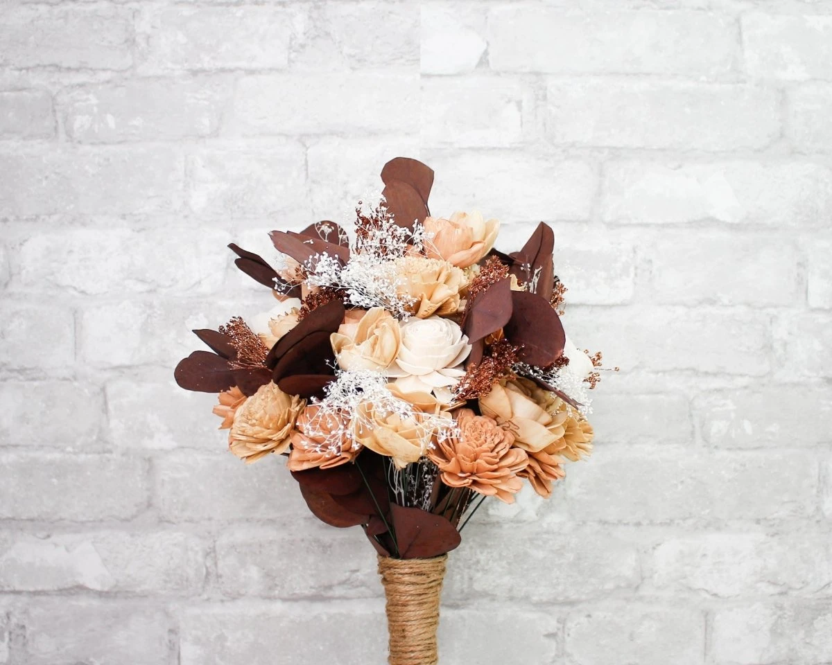 This Bridal bouquet is absolutely gorgeous. The beautiful assortment of sola wood flowers is perfectly paired with three of our most popular fillers.